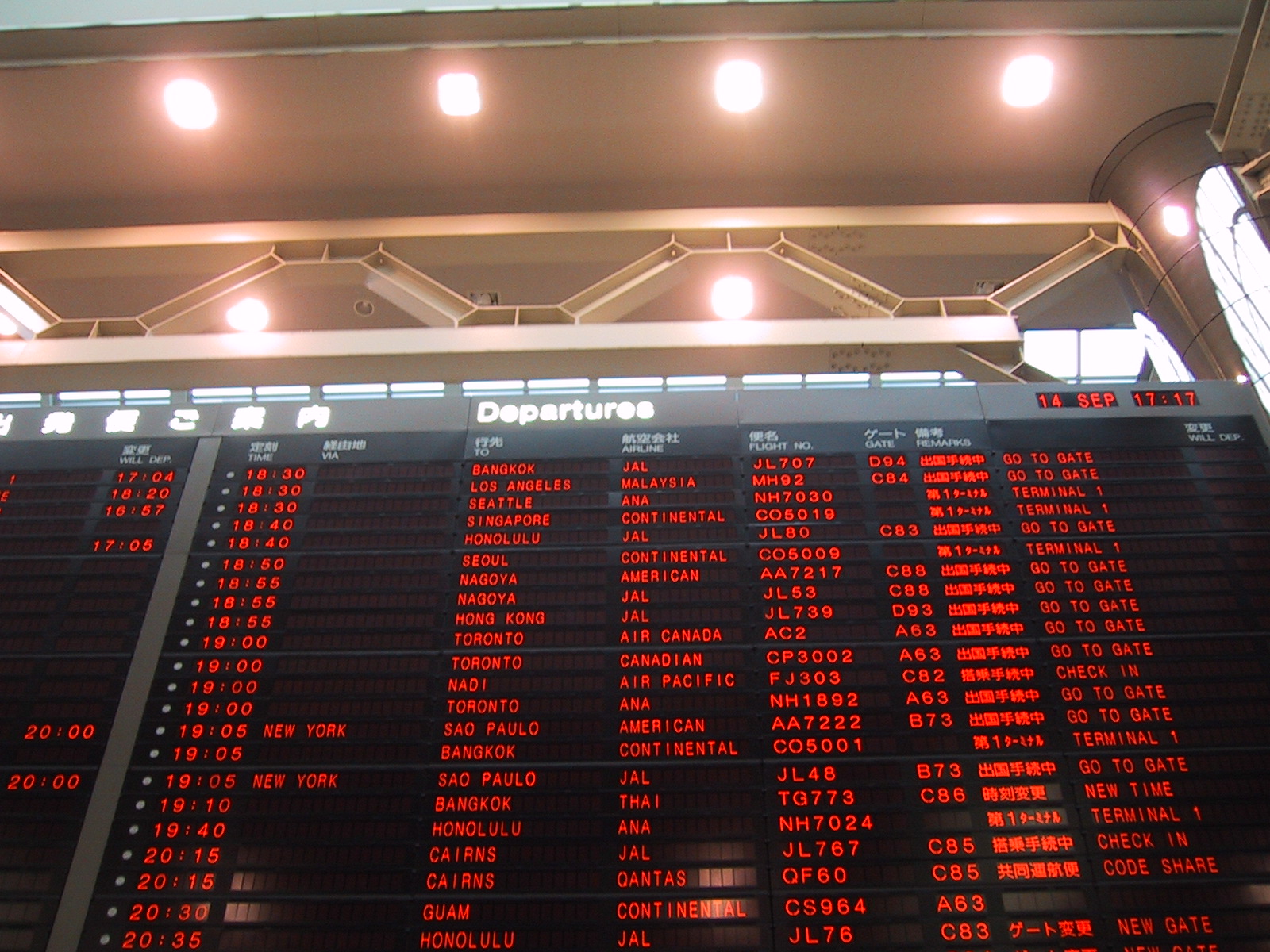 9月14日、一旦大学へ行ってもろもろの仕事を済まし、 午後2:45頃に大学を出て日暮里から京成スカイライナーで成田へ向かう。 バンコク経由なので他のみんなより一日早い。