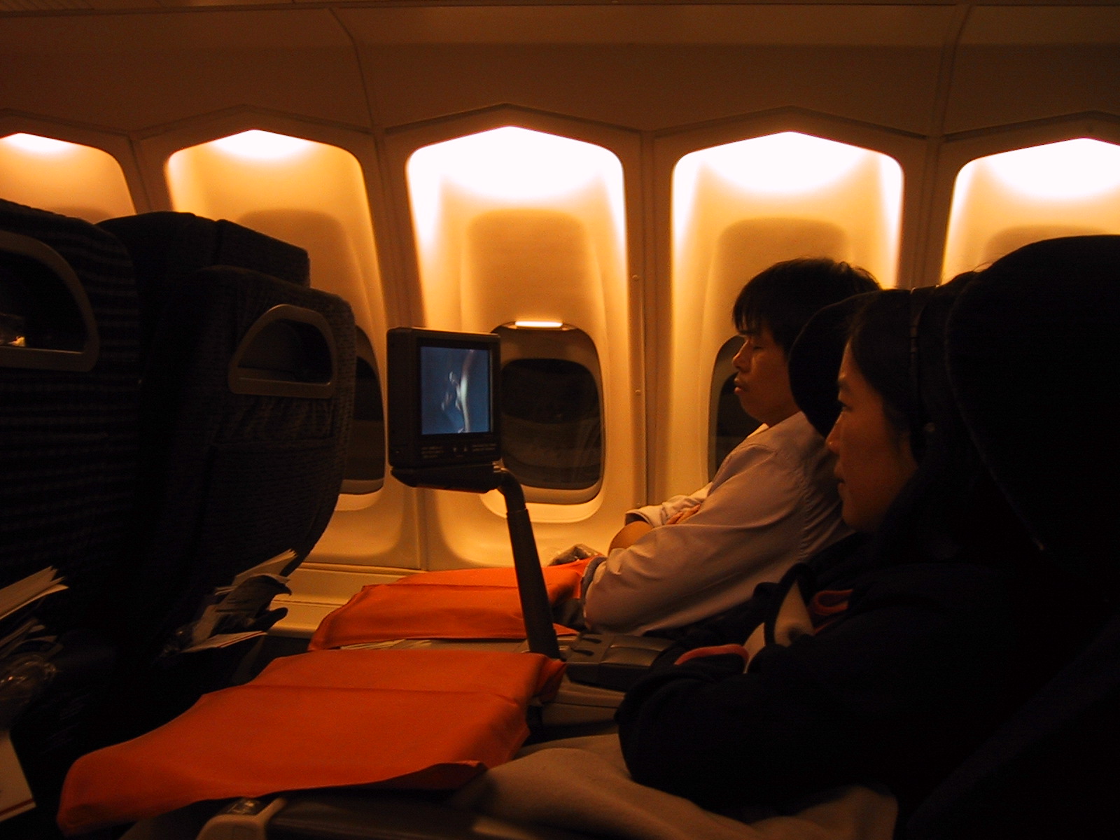 さすがビジネスクラスなので、一人一人にテレビがあった。 ビジネスクラスは初めて乗ったが、感動的に快適だった。 席は広いし機内食はおいしい。