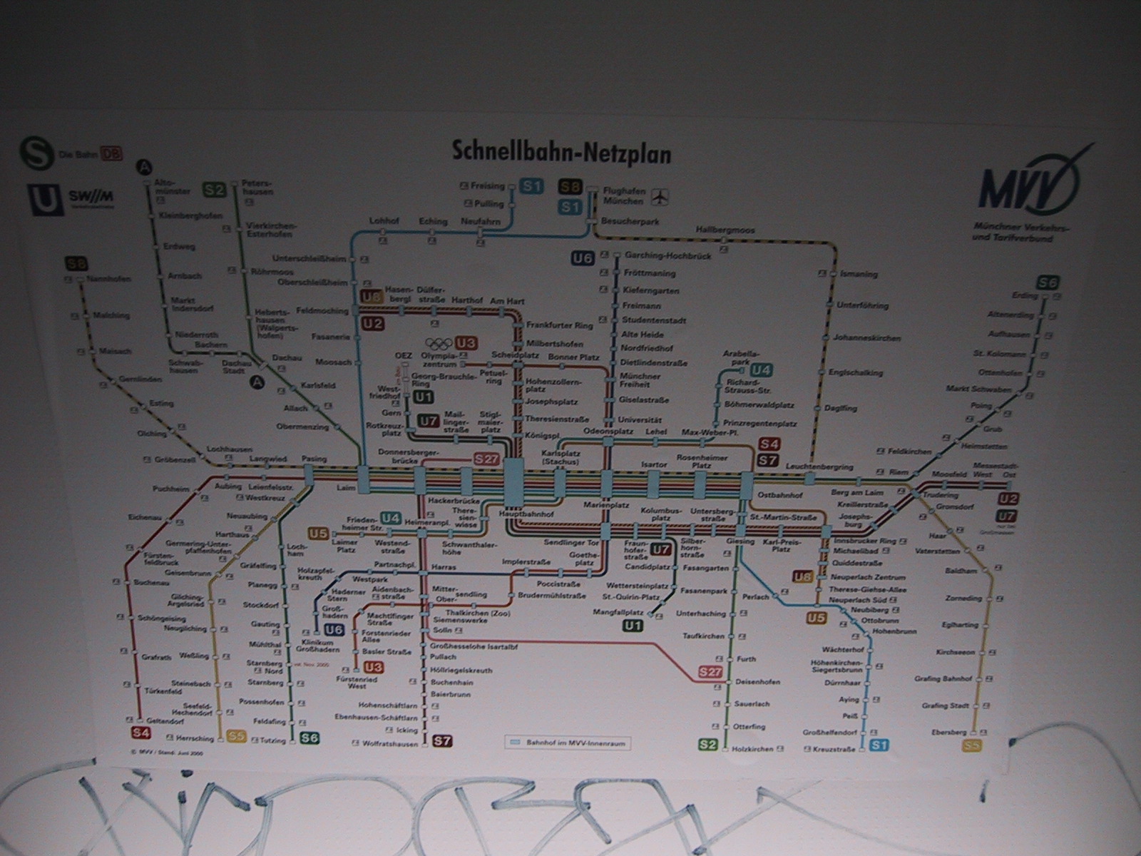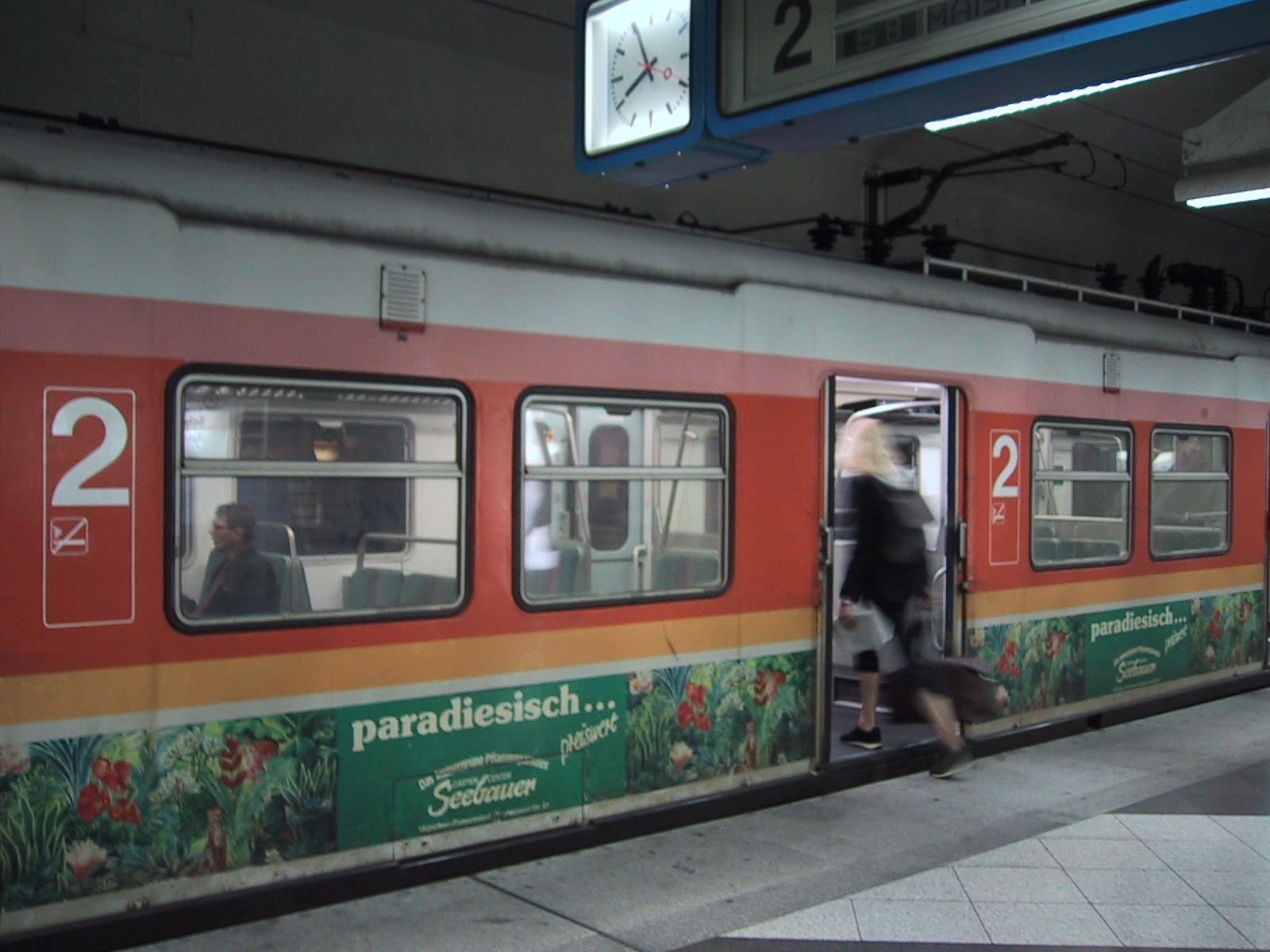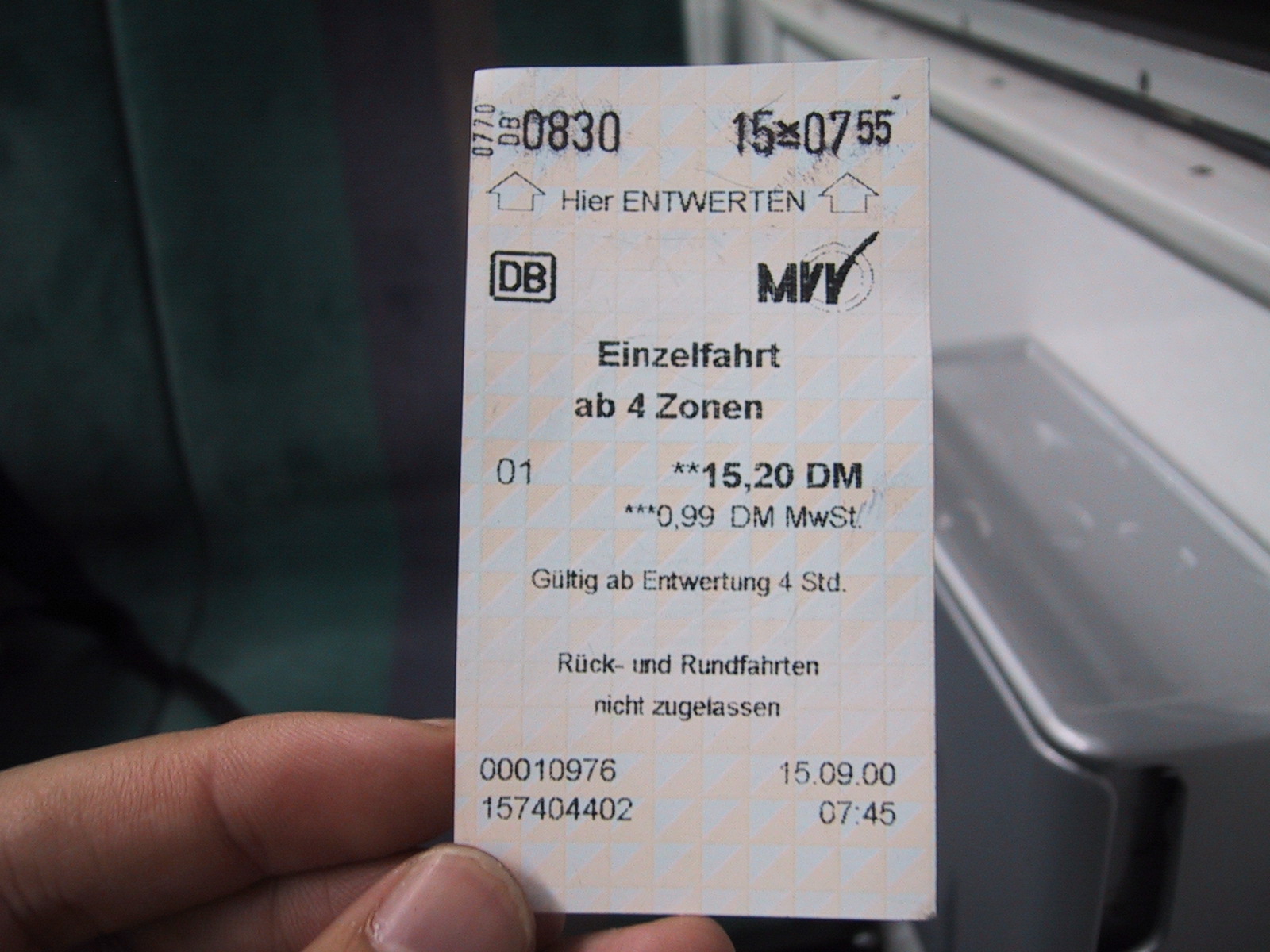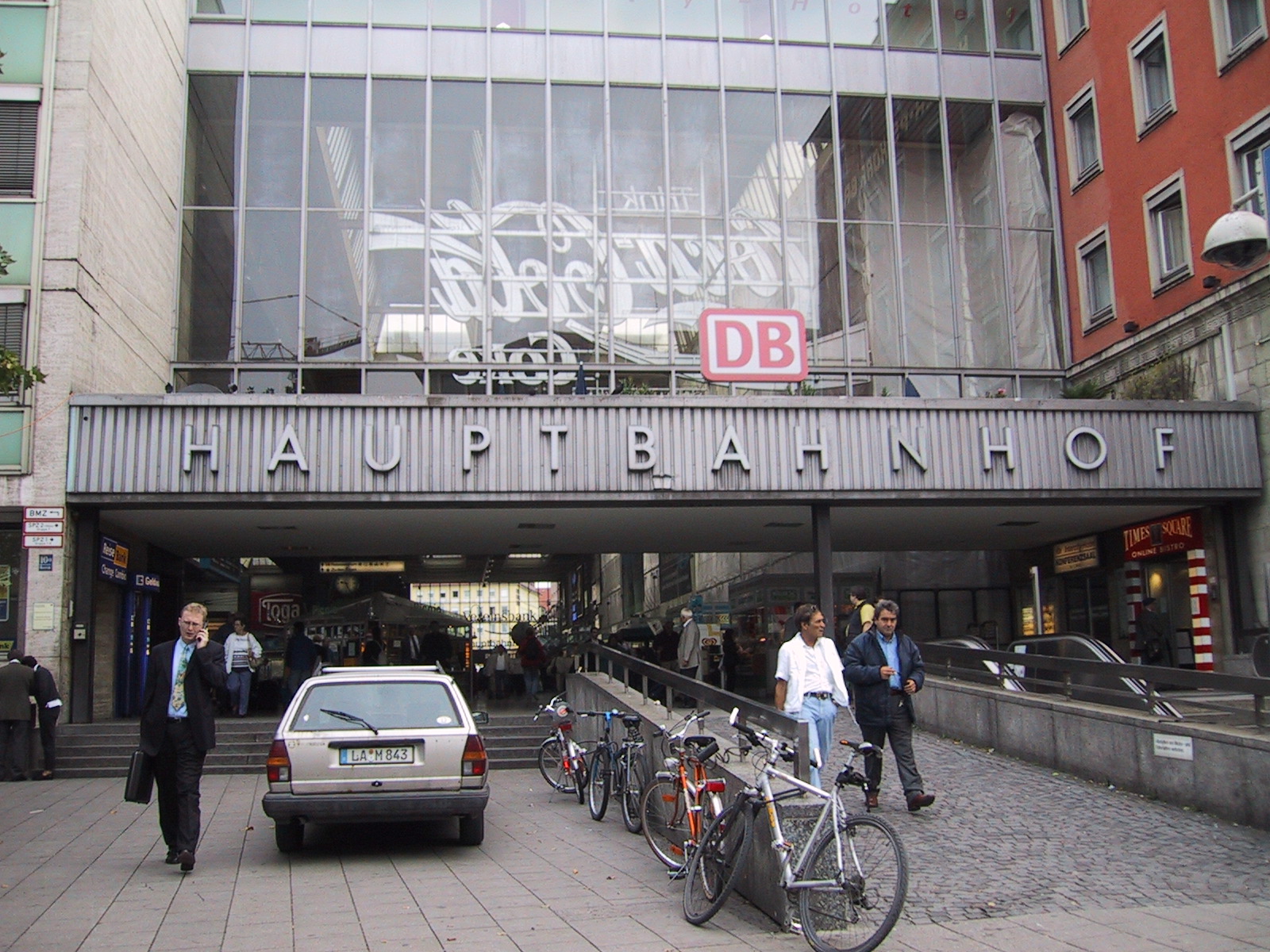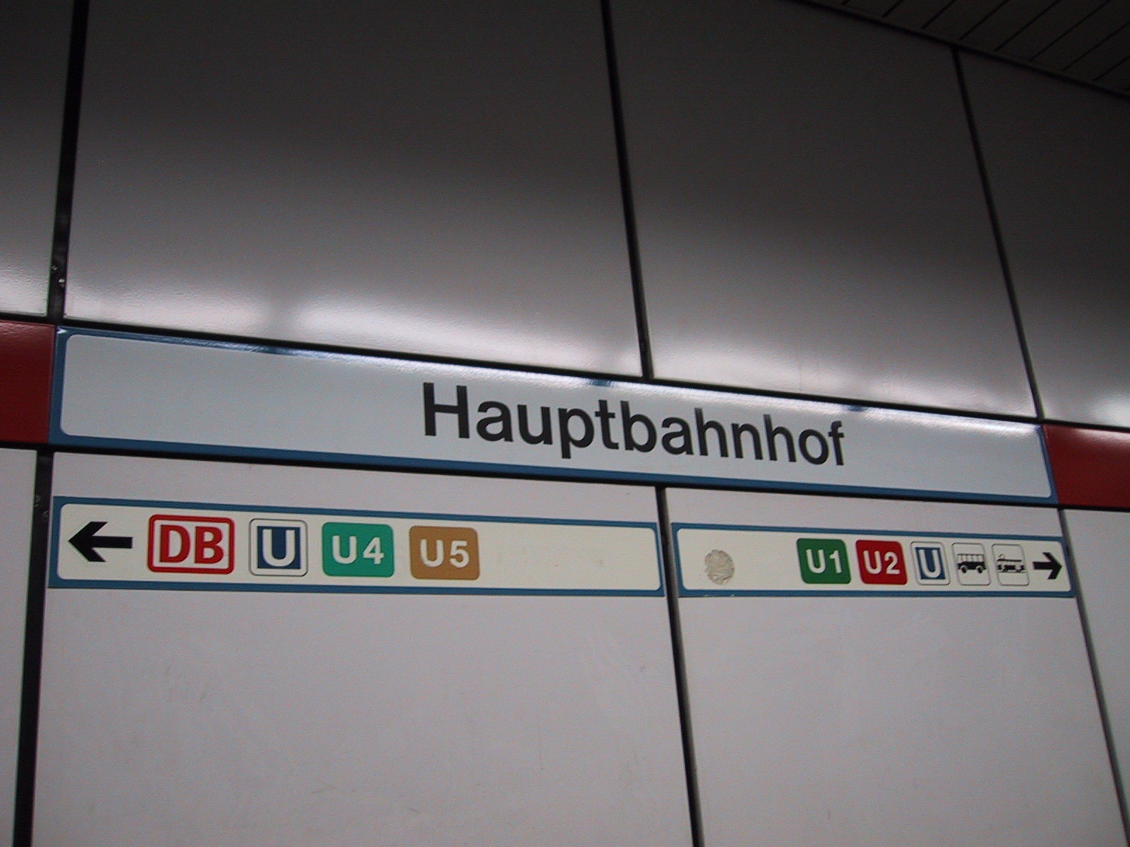 とりあえずミュンヘンの中央駅(Hauptbahnhof)に向かおうとするが、 何故かうまく切符が買えない。15.20DMに対して10DM札×2を入れようとするが、 最初の一枚を入れると次の一枚を受け付けなくなる。結局つり銭切れだった らしく、別の機械を使えばOK。