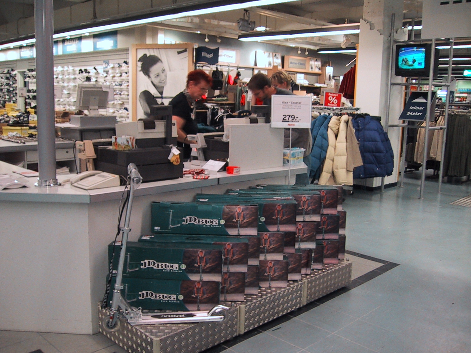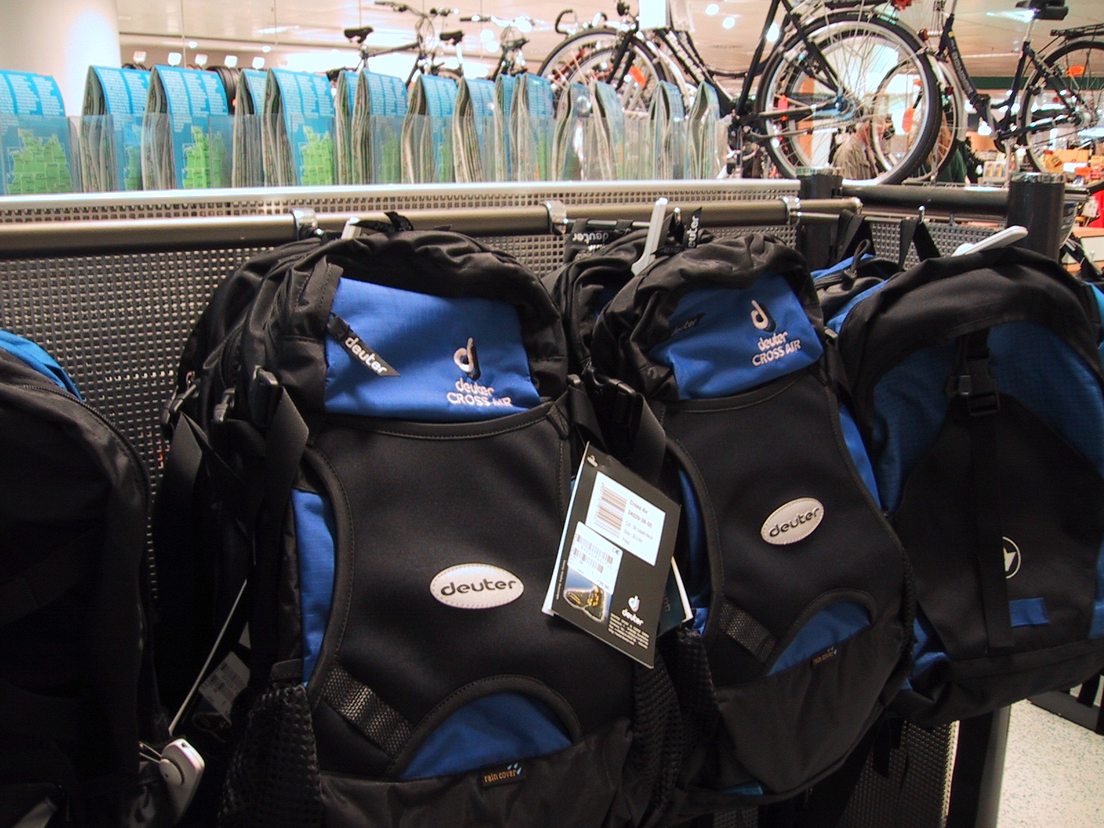 日頃愛用しているDeuterのCross Airがずらり。さすがドイツ。 価格も139.90DM(約7,000円)と、日本で買ったときの11,000円より安かった。