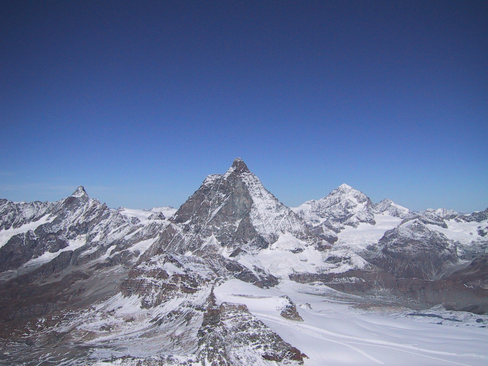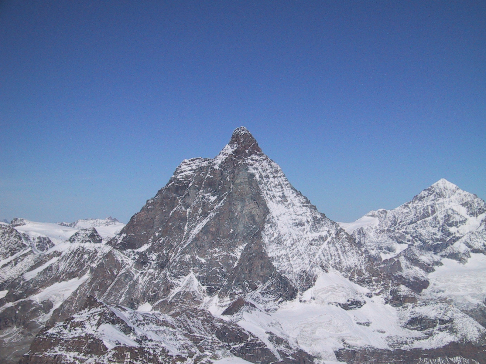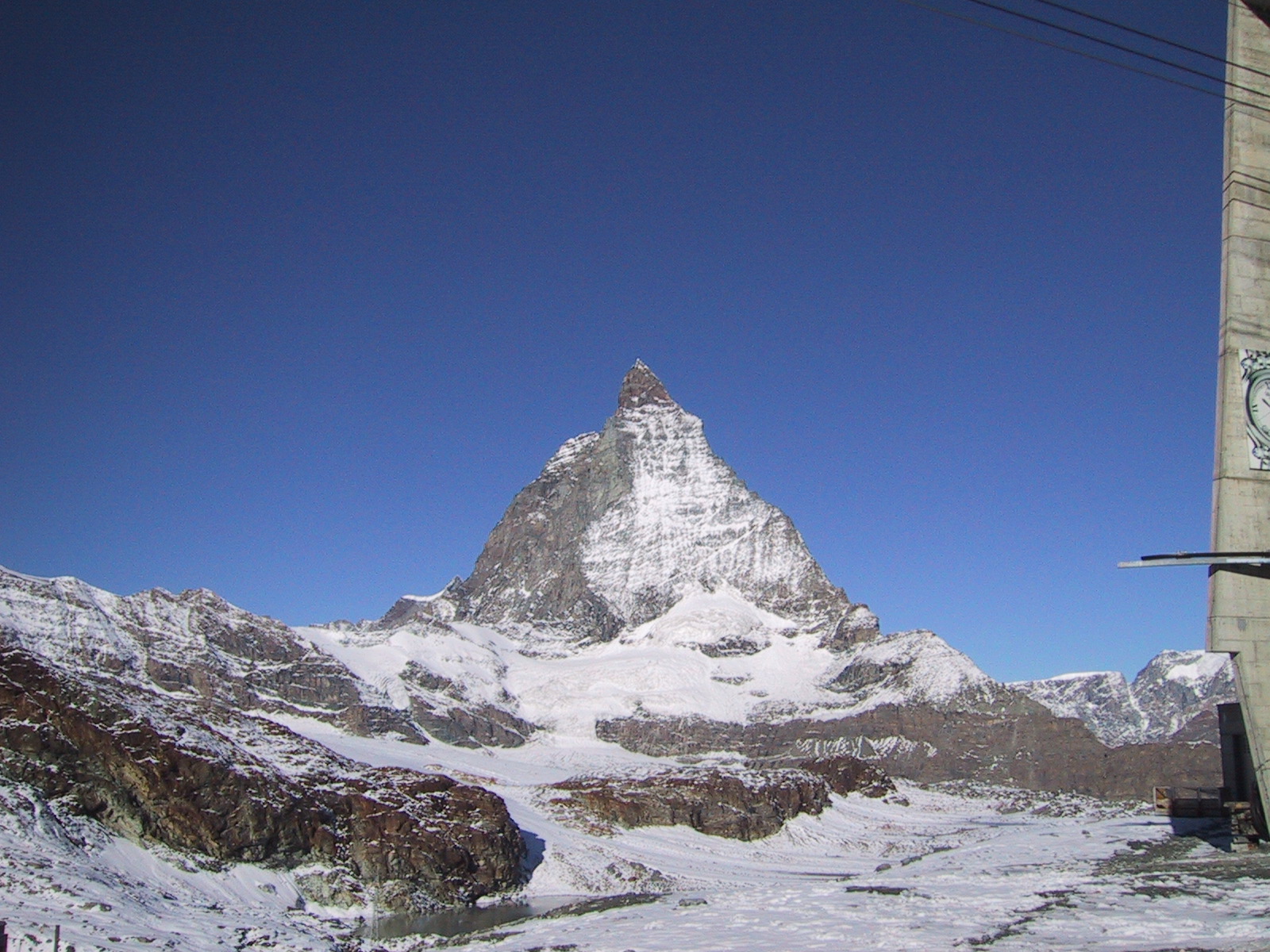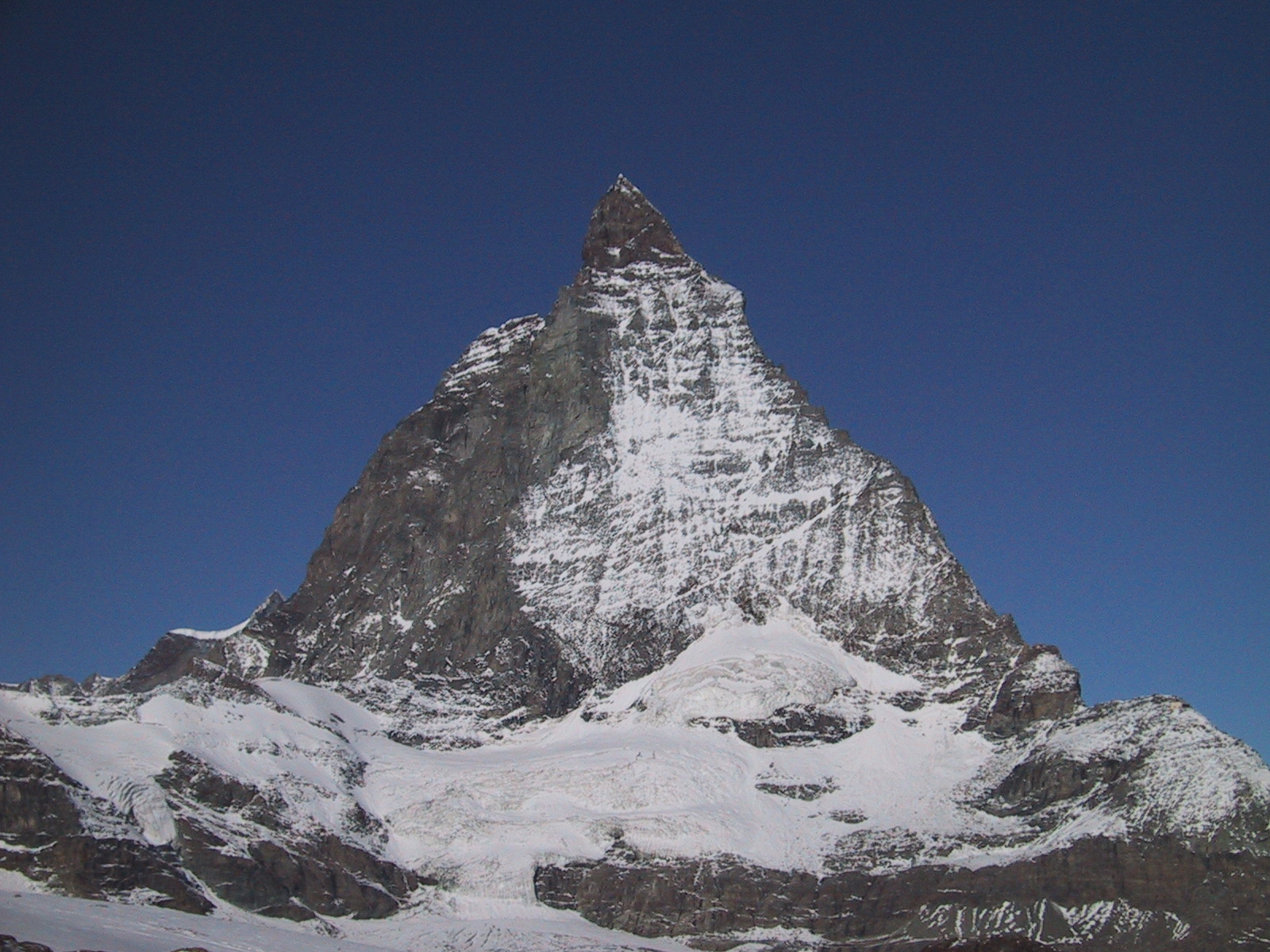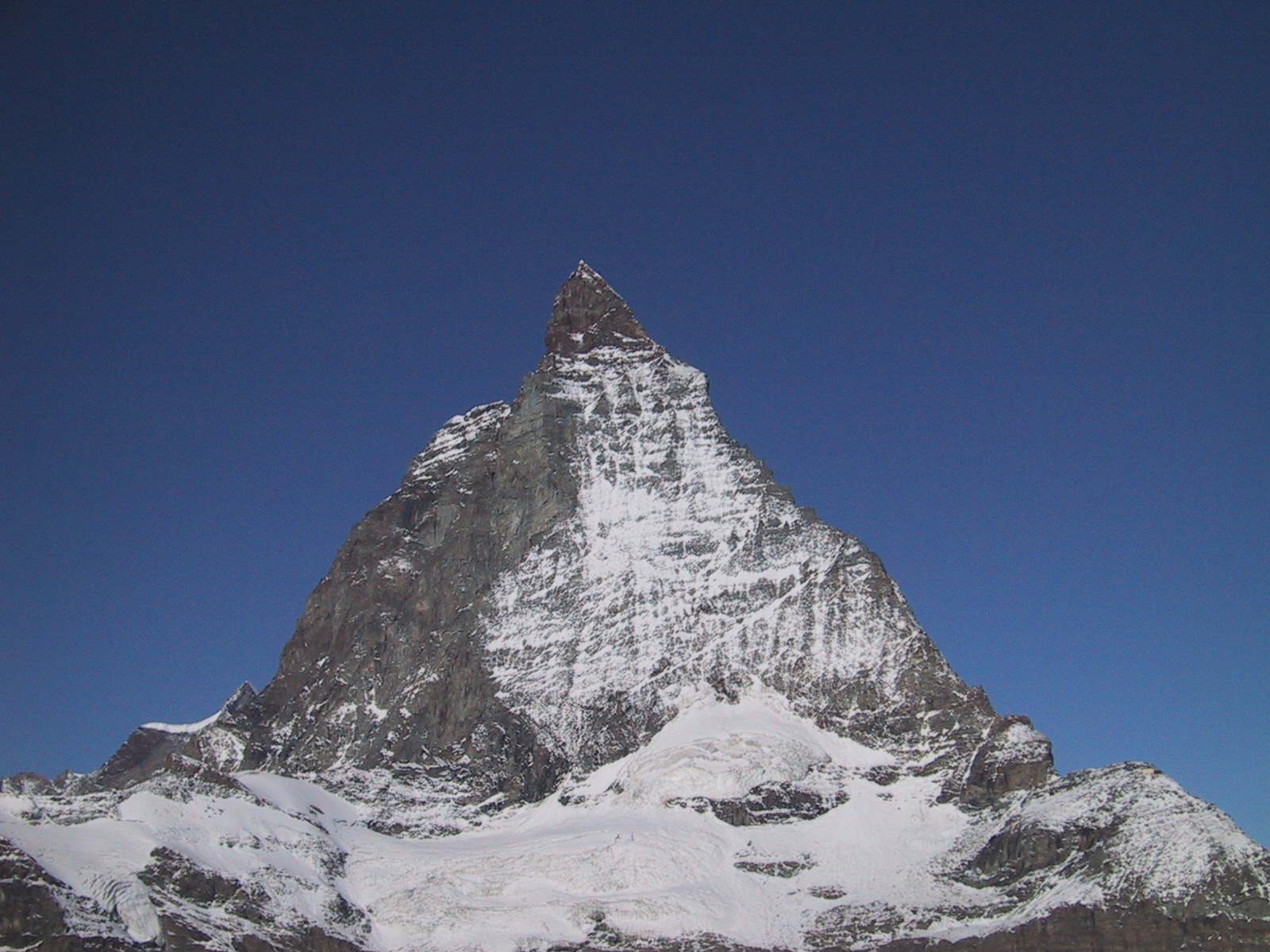 ここからのマッターホルン。 東壁が正面にくるため、Zermattからとは形が違う。
