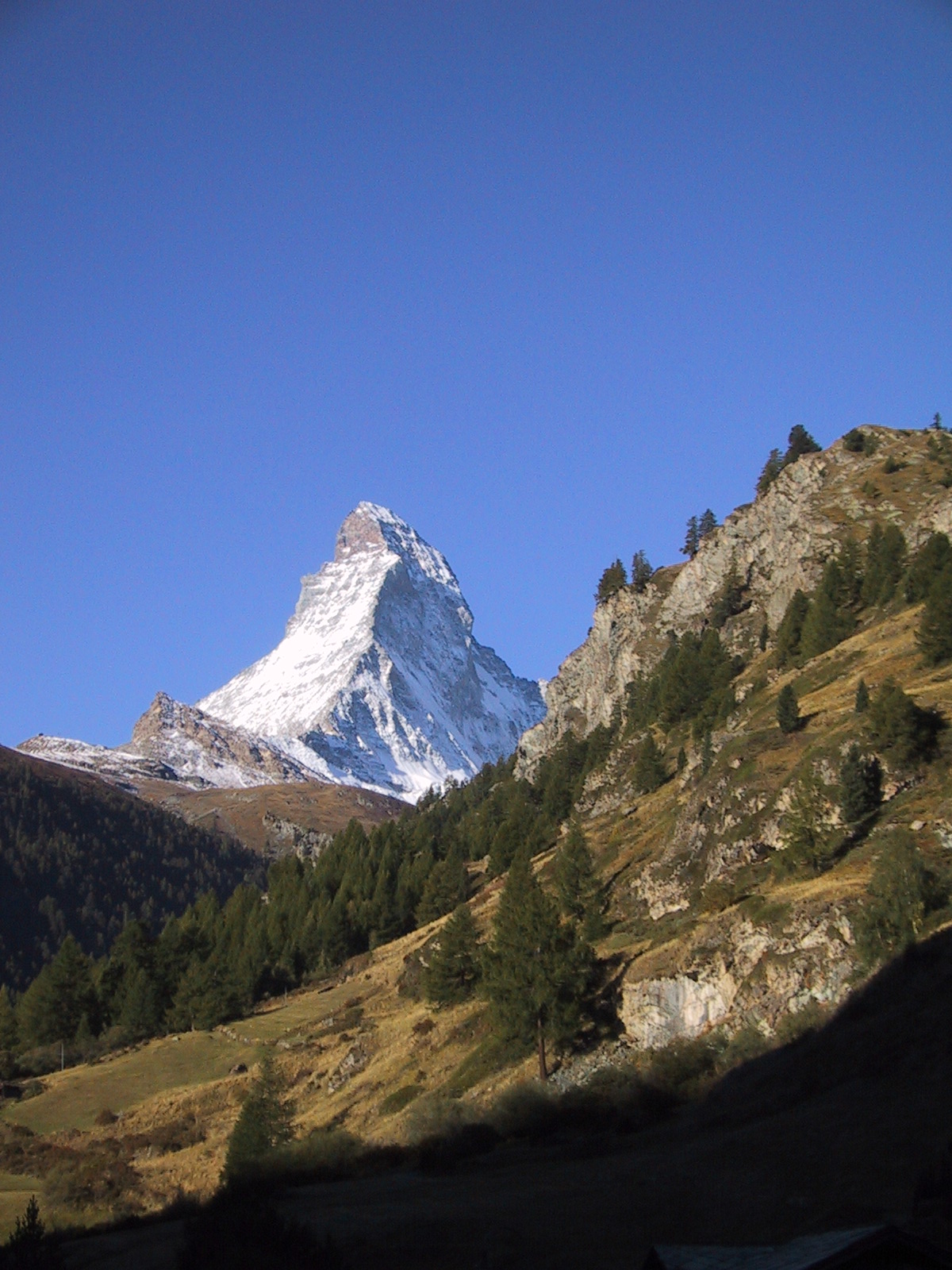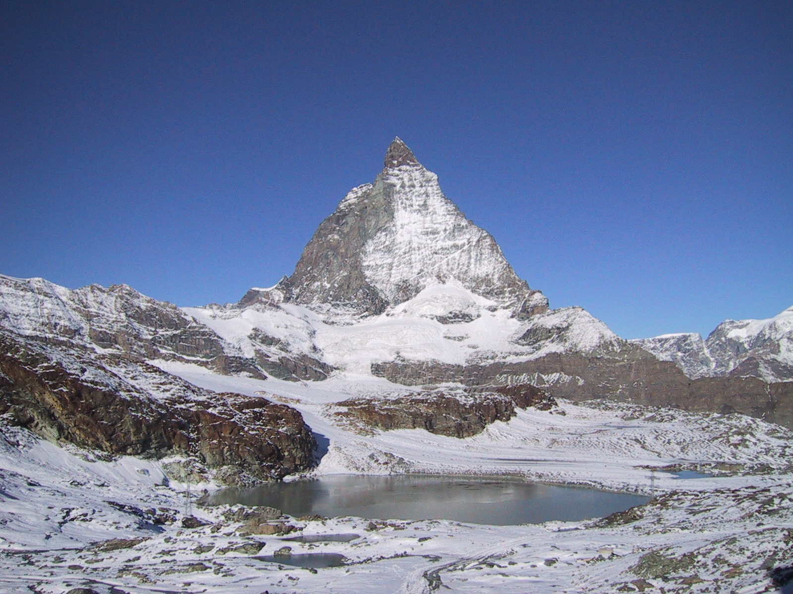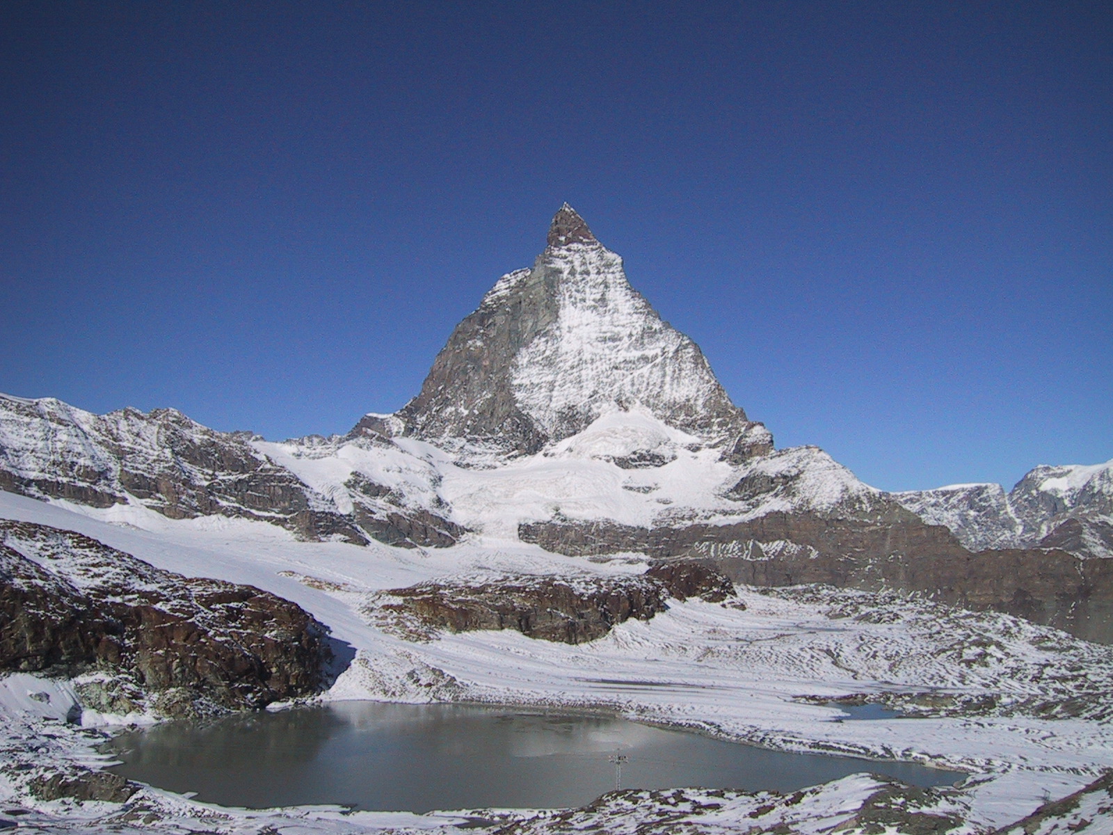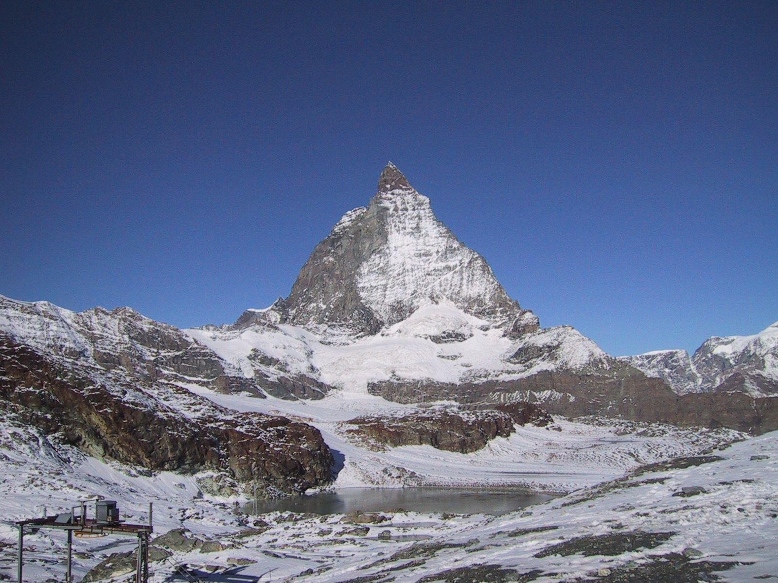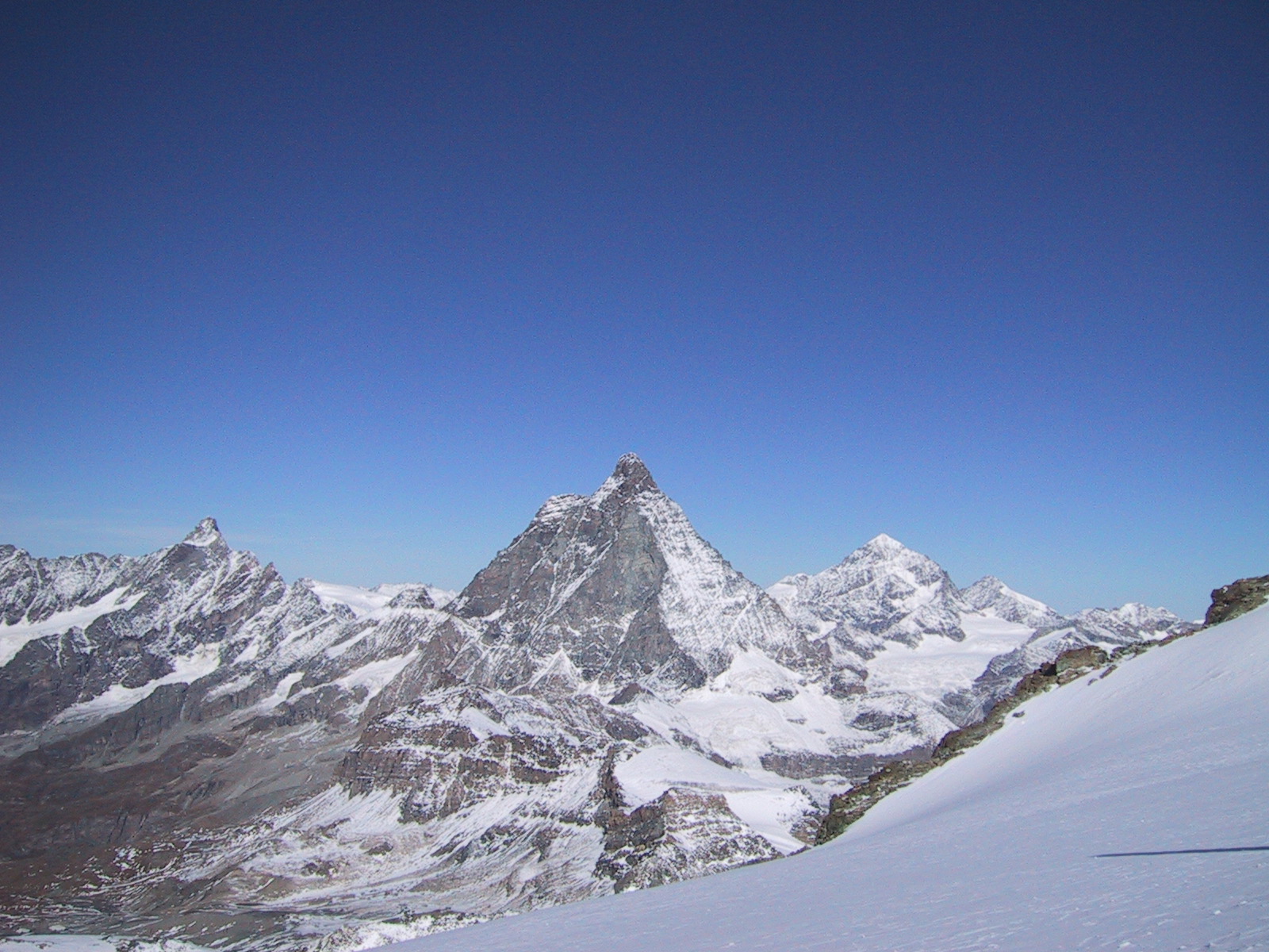 ここからのマッターホルン。 東壁が正面にくるため、Zermattからとは形が違う。