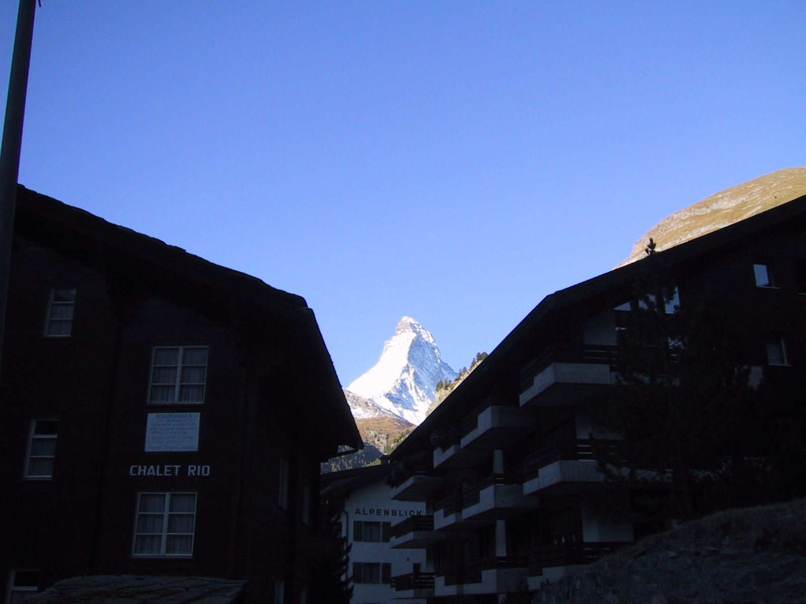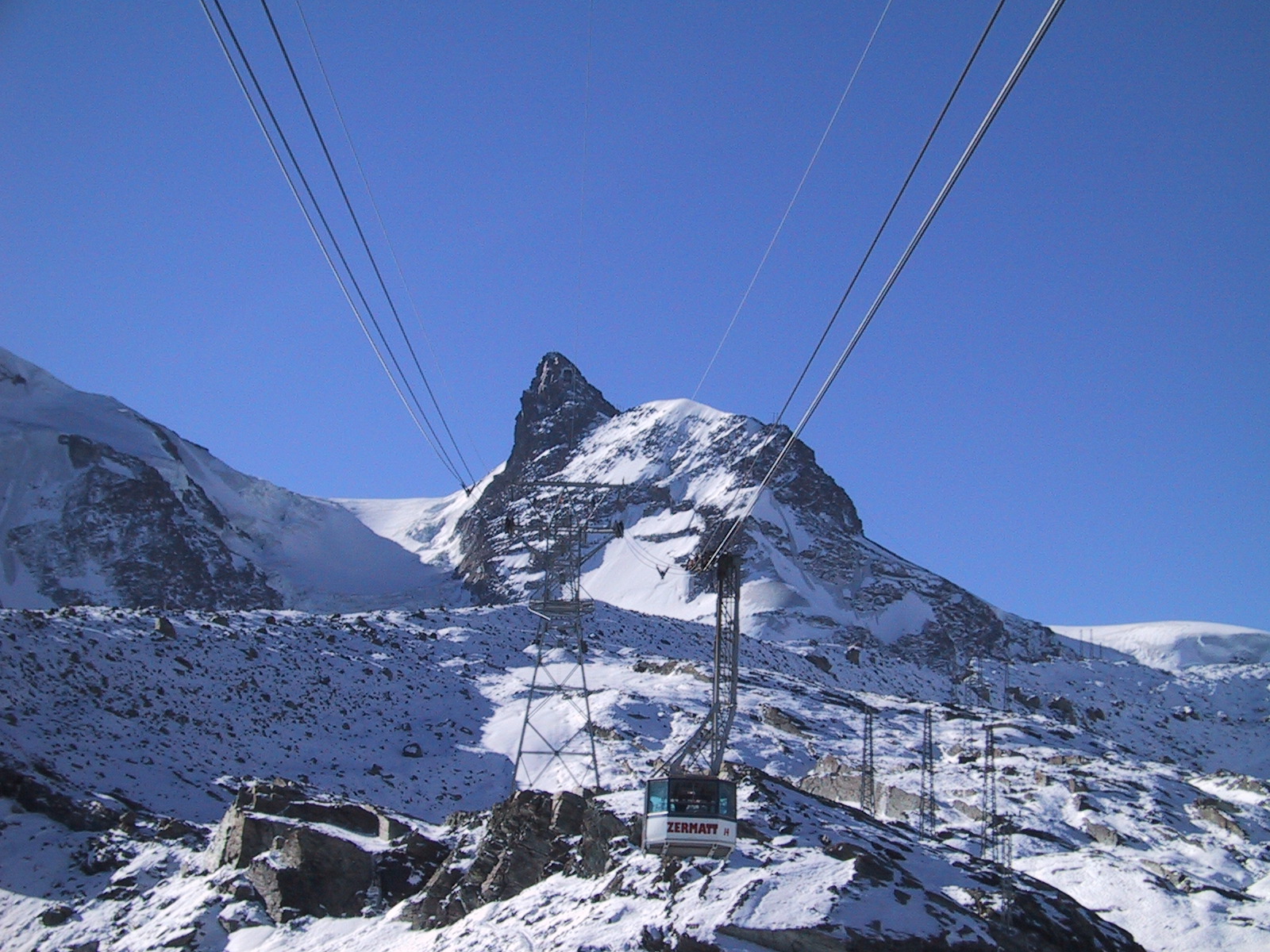今日は、ゴルナーグラートGornergratと並ぶ一級の展望台、 クラインマッターホルンKlein Matterhornに行くことにする。 町からもマッターホルンがよく見える。