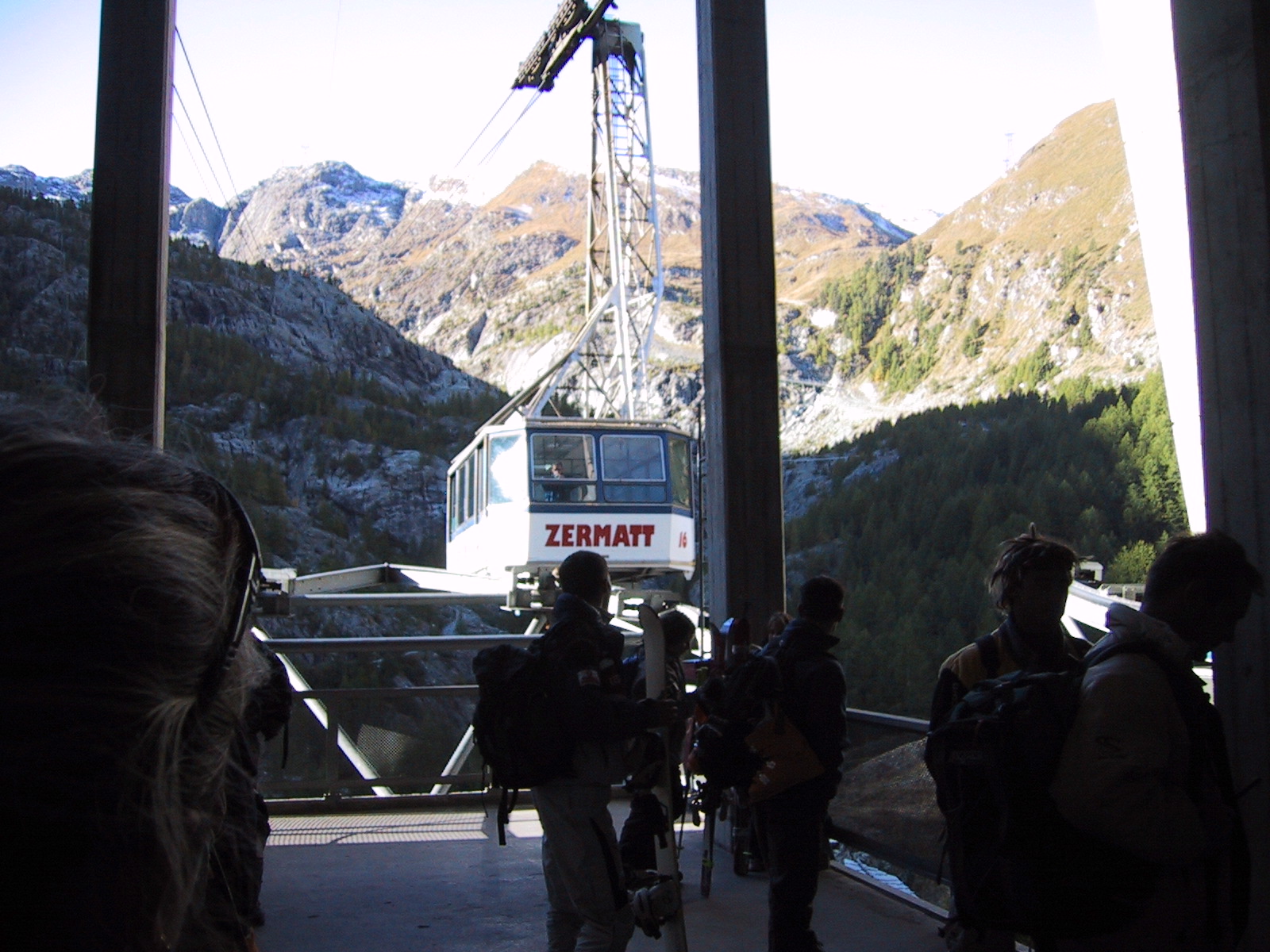 クラインマッターホルン行きのロープウェイに乗る。 クラインマッターホルンが近づいて来る。