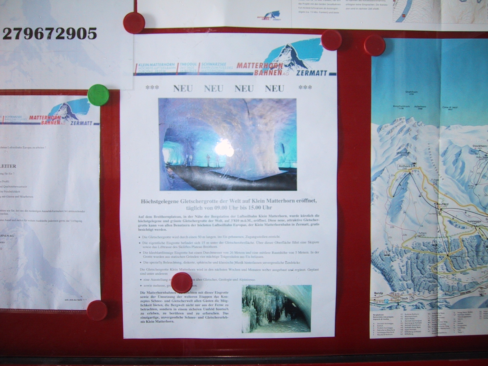 冬のZermatt方面のスキーのコース図。 本当にここからZermattの町まで滑れるらしい。 一度来て見たいなあ。