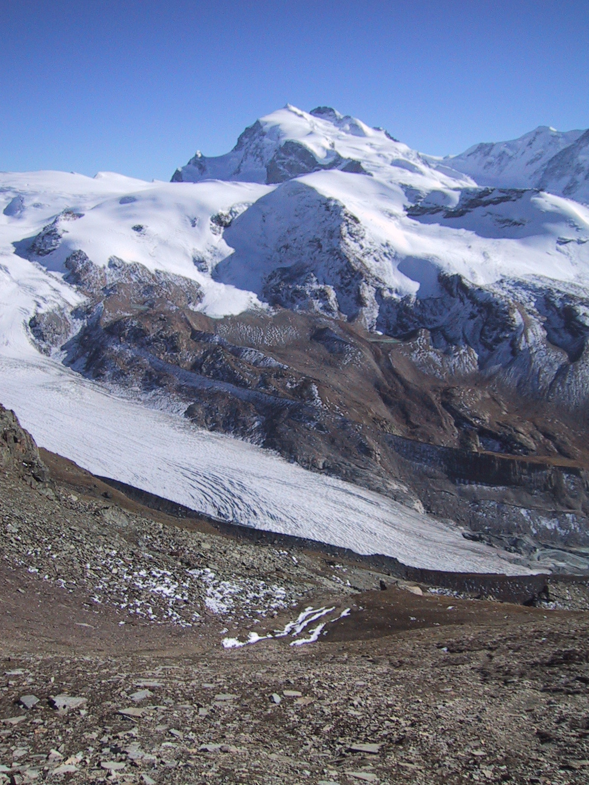 目の前の山がオーバーロートホルンOberrothorn (3415m)。