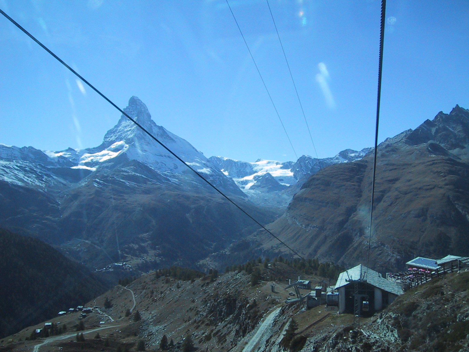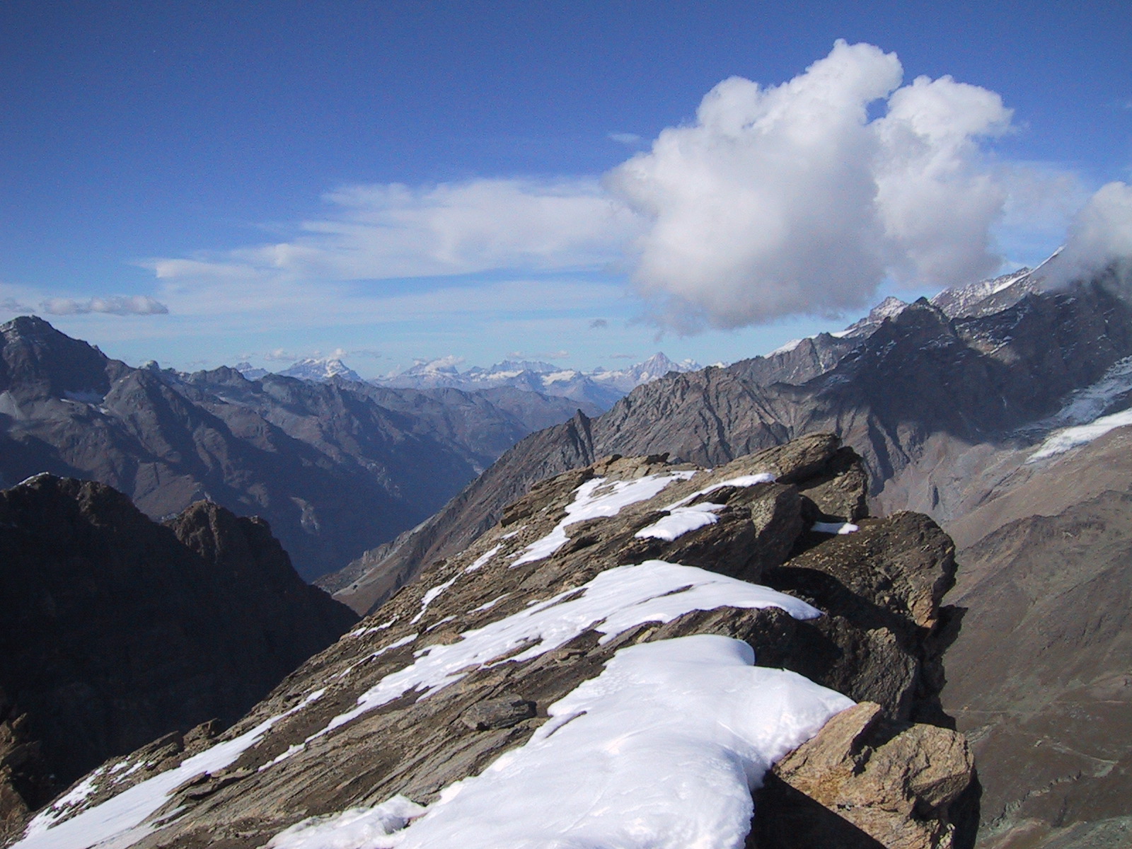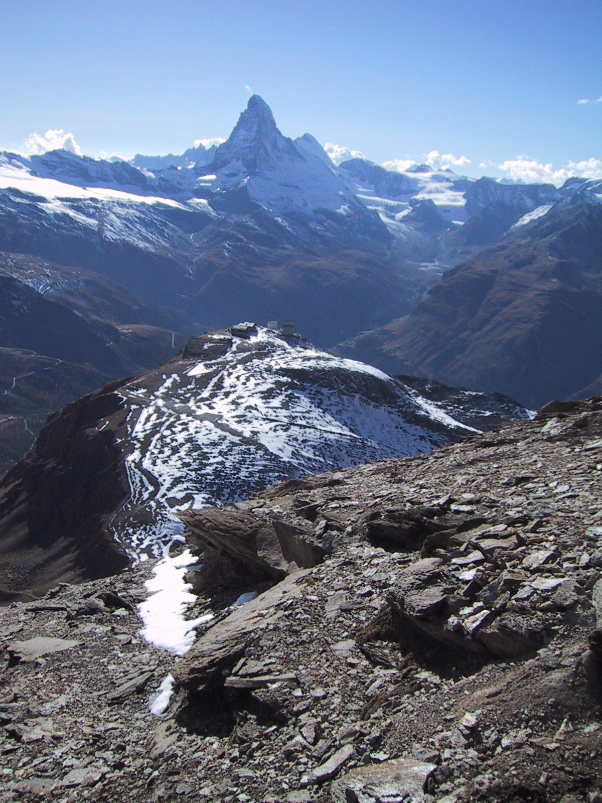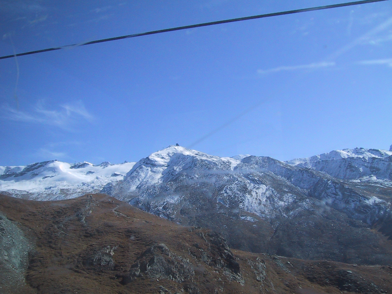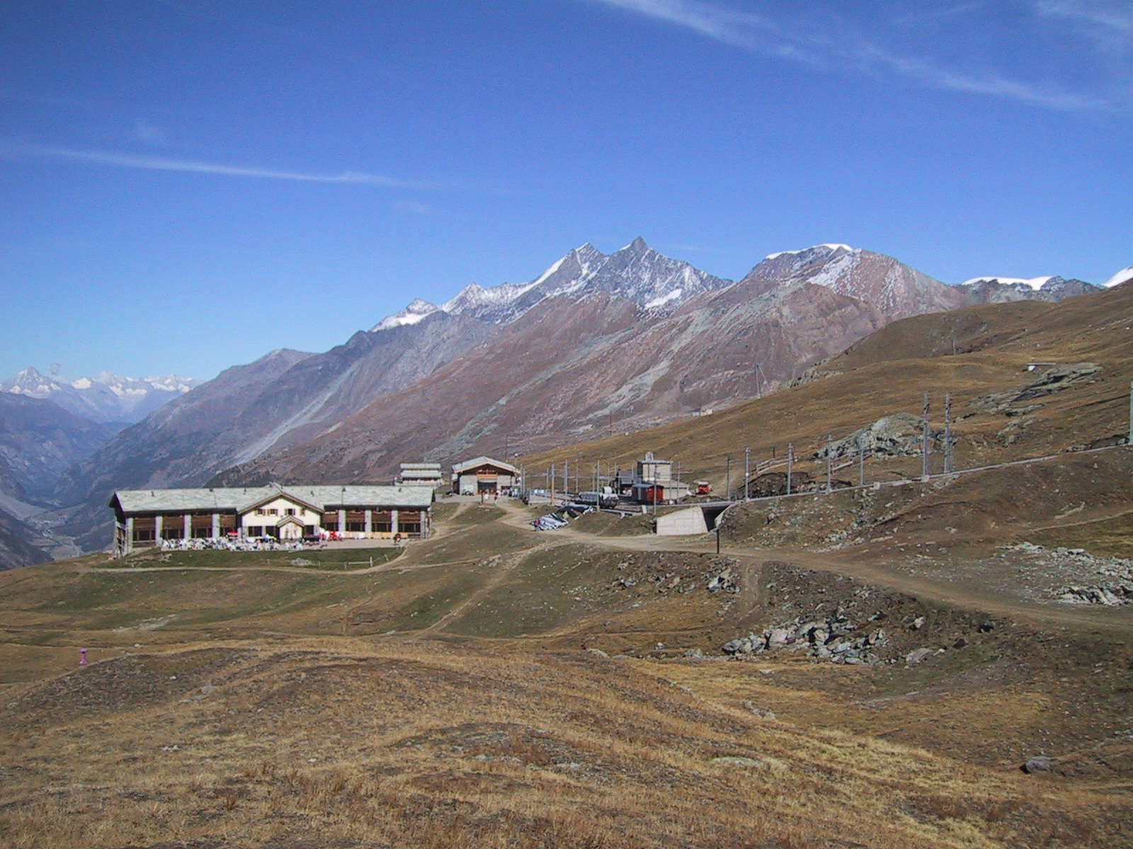 稜線上に建物らしきものが見える。 ゴルナーグラートかホーテリかシュトックホルンか。