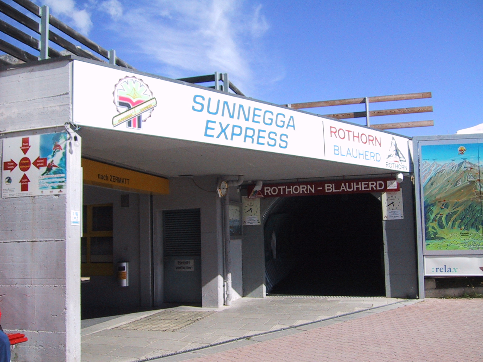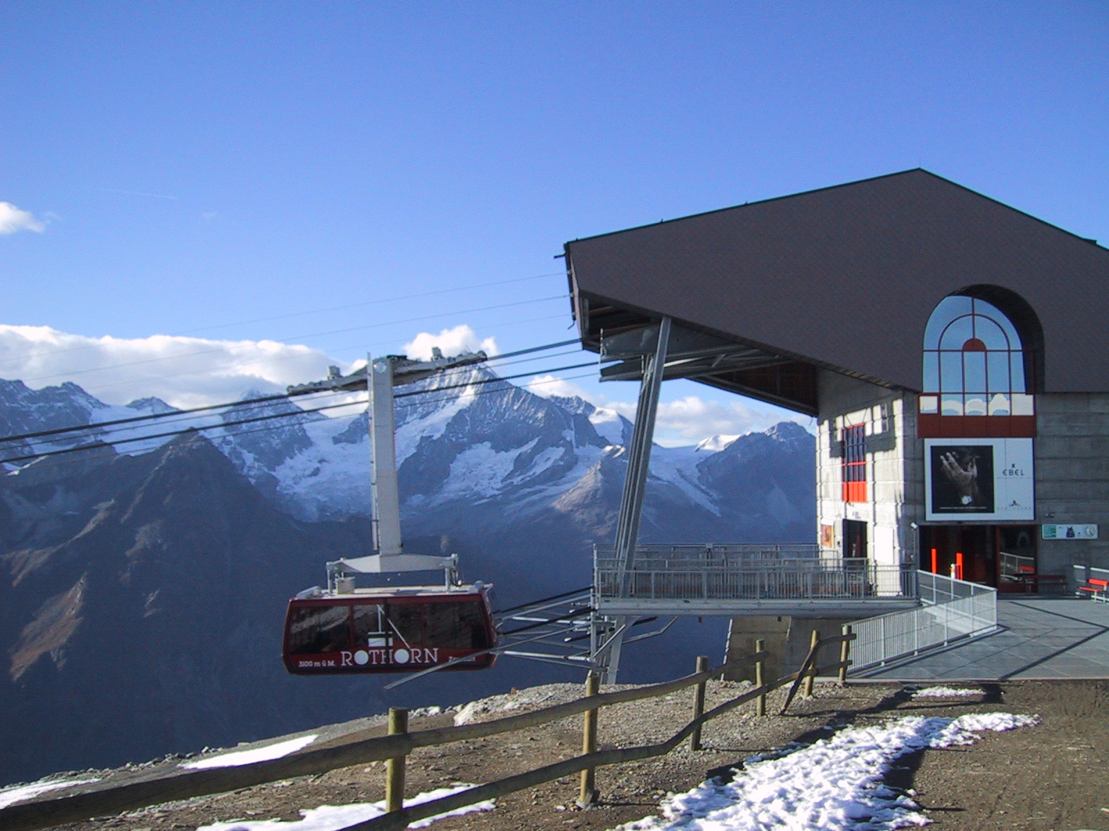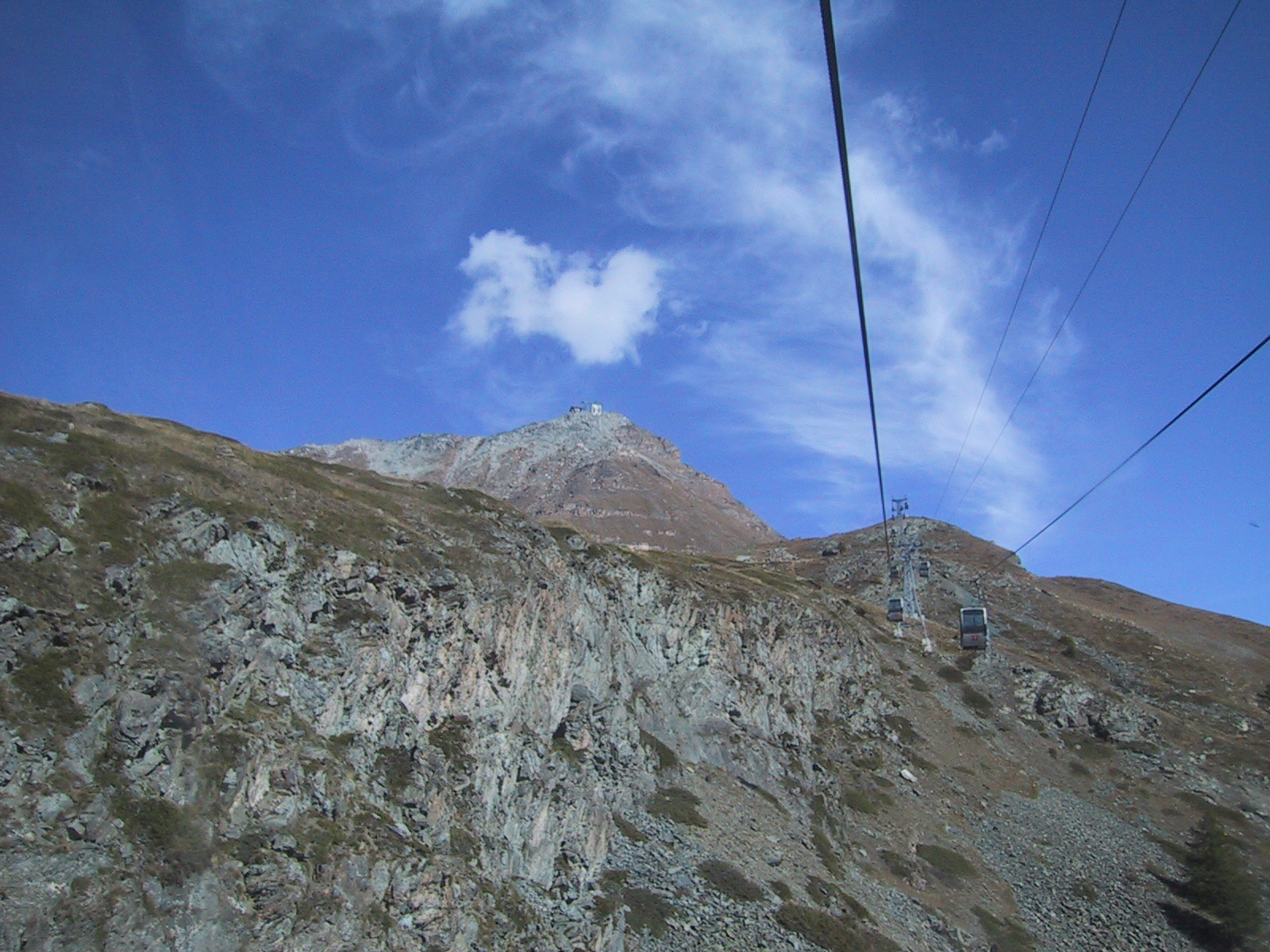 もう3時近かったが、なんとか今日のもう一つの目標である ウンターロートホルンUnterrothorn (3103m)と オーバーロートホルンOberrothorn (3415m)を目指して、 地下ケーブルカーに乗る。