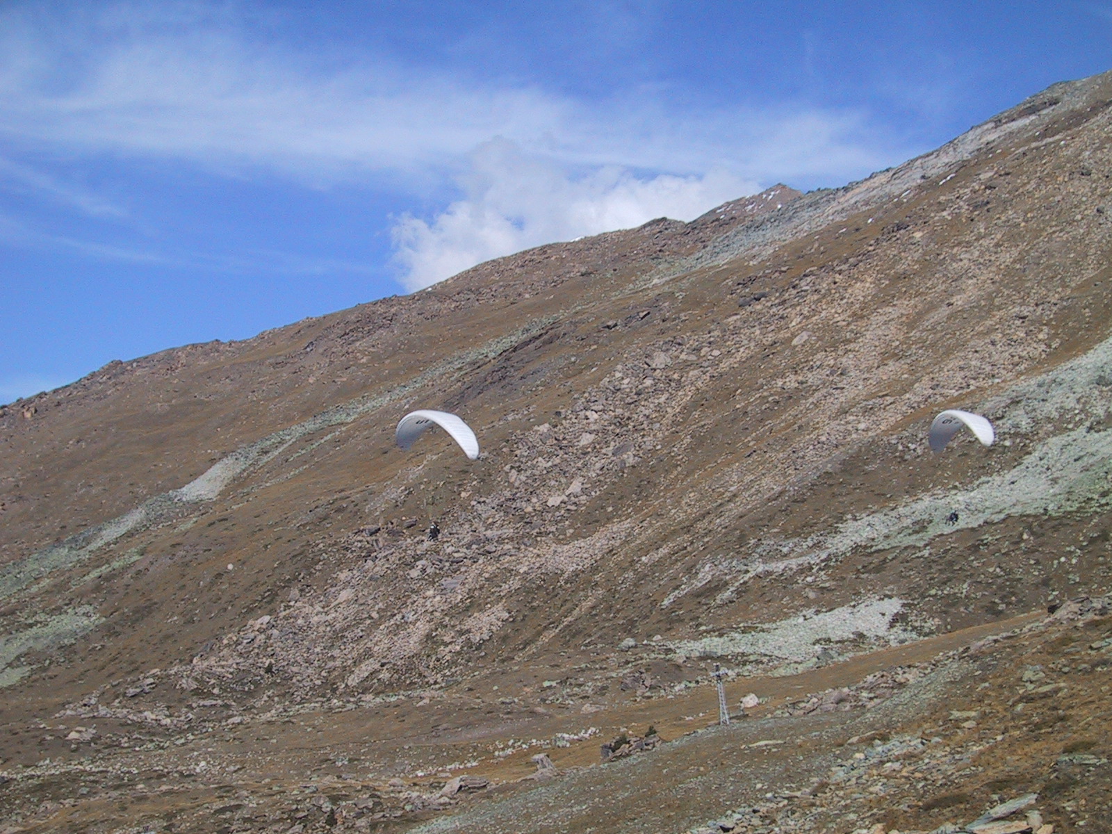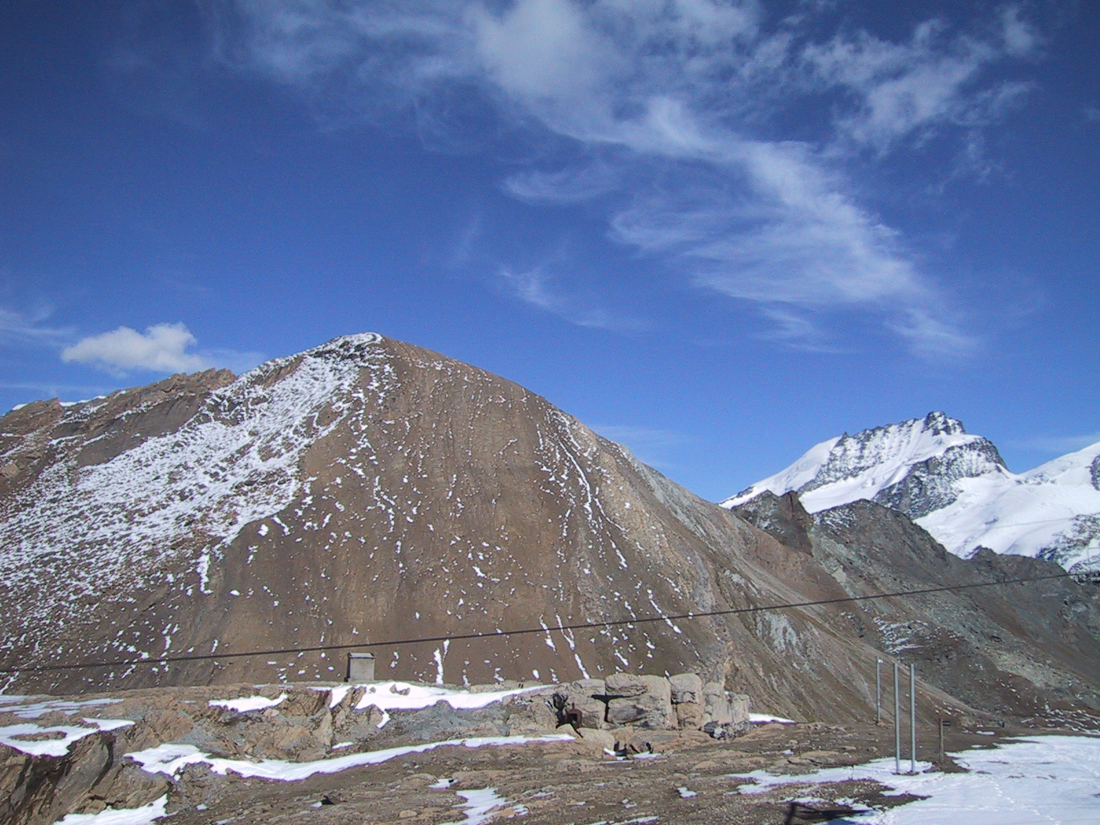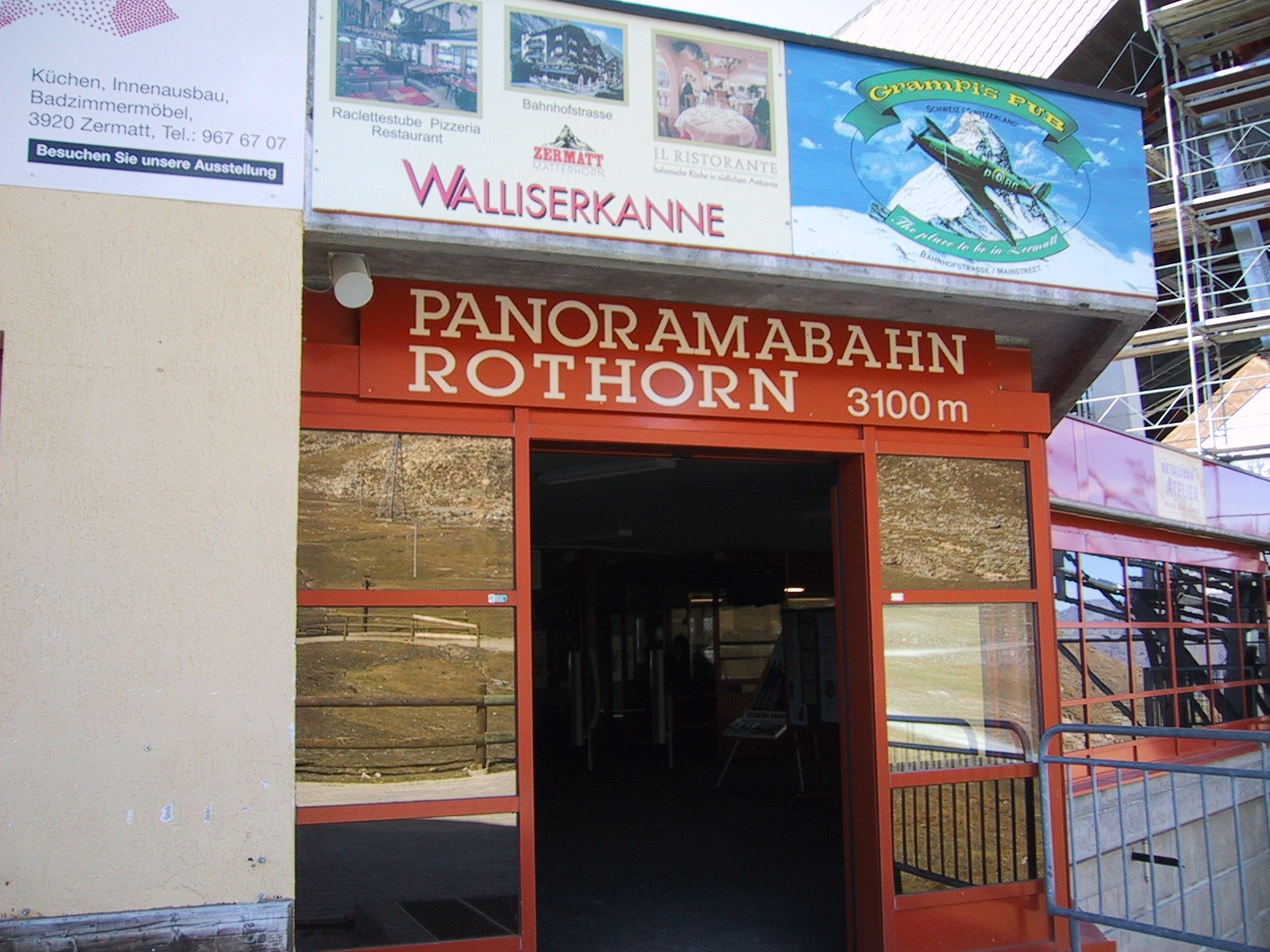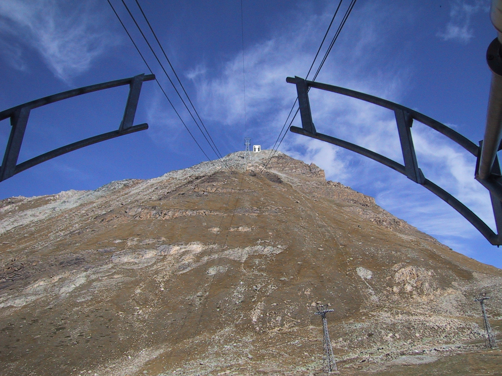 もう3時近かったが、なんとか今日のもう一つの目標である ウンターロートホルンUnterrothorn (3103m)と オーバーロートホルンOberrothorn (3415m)を目指して、 地下ケーブルカーに乗る。