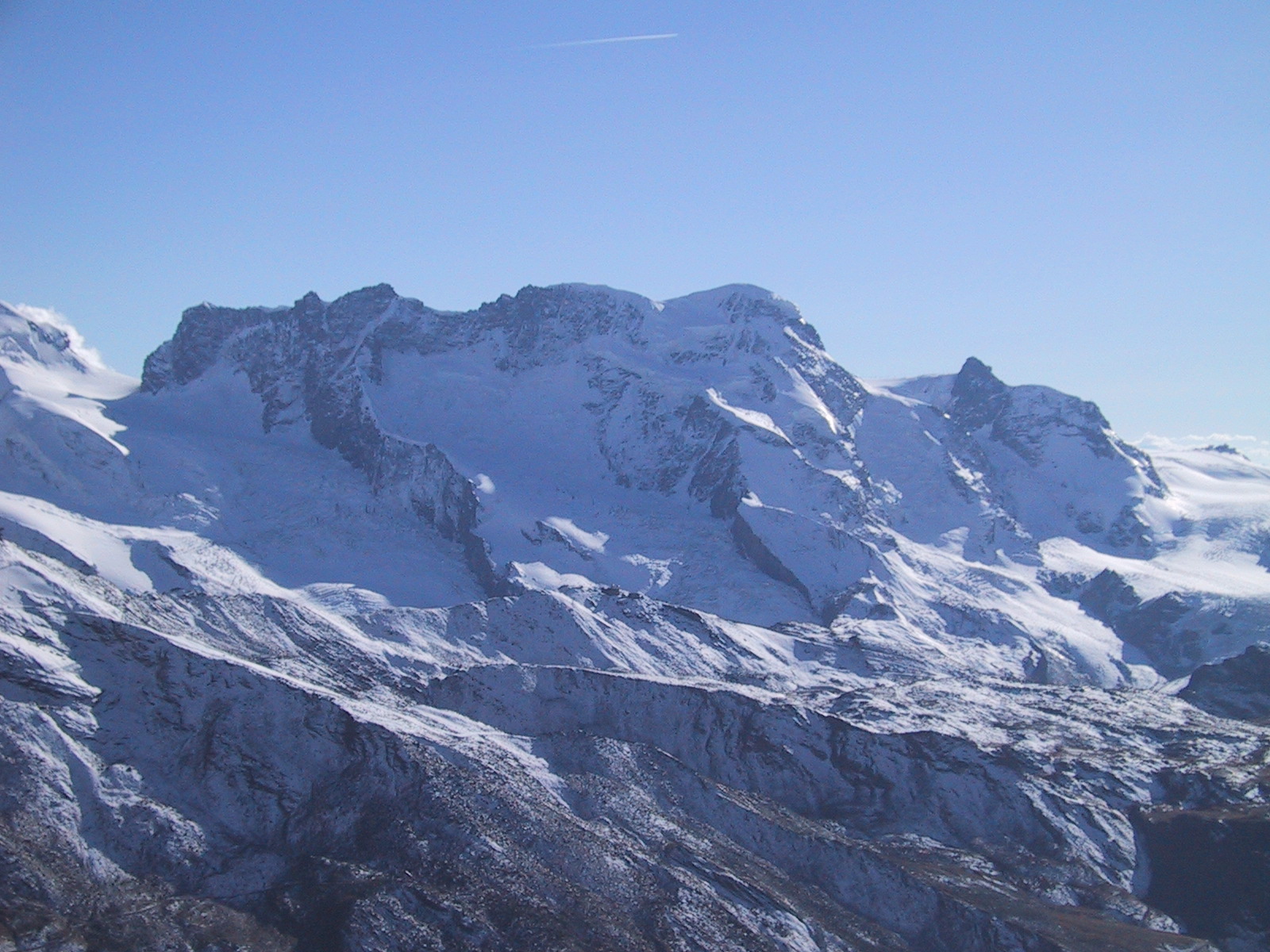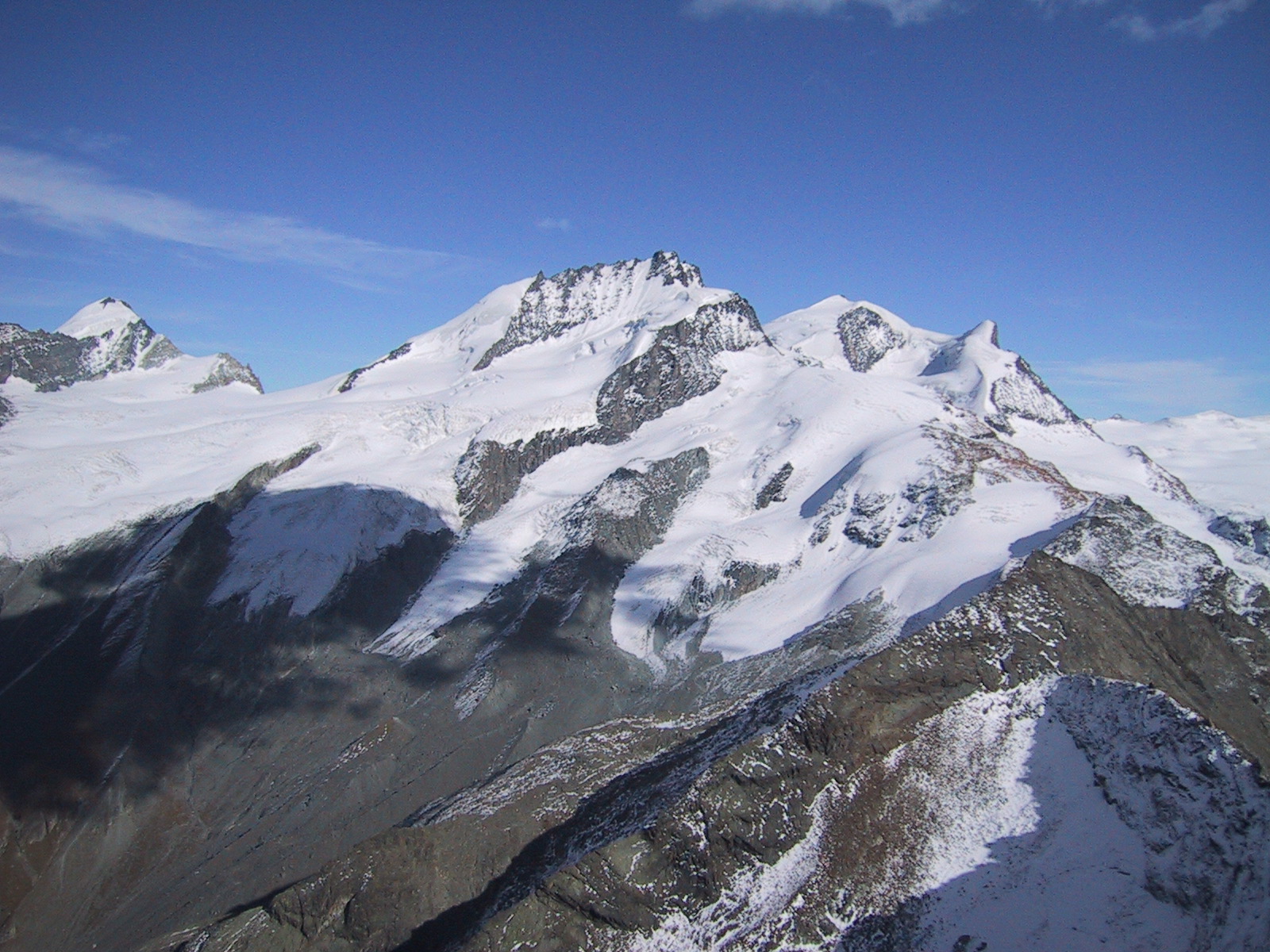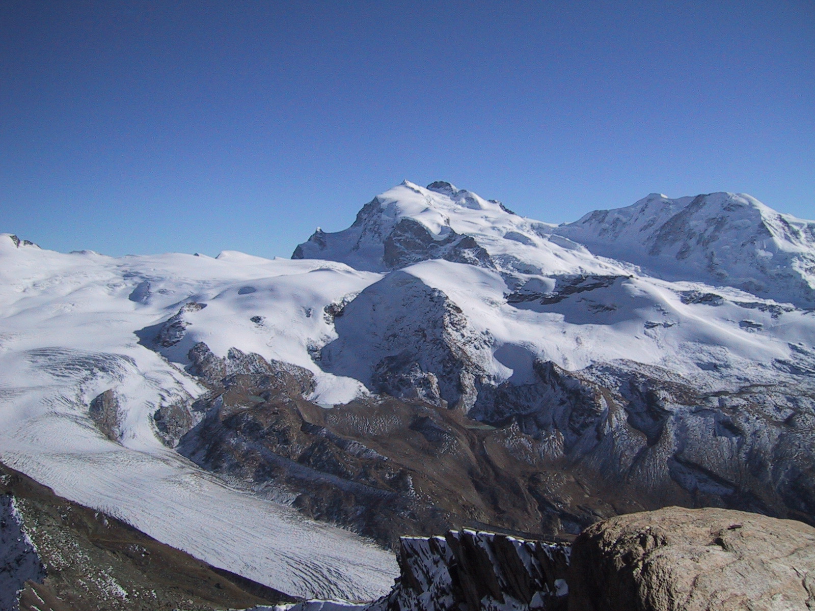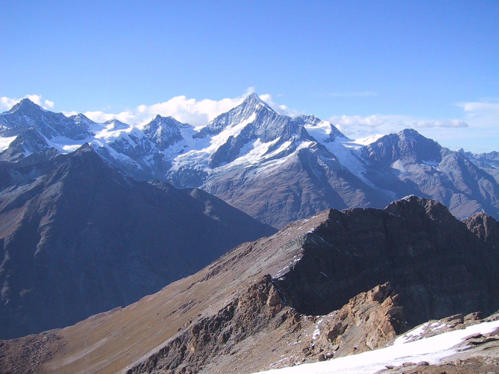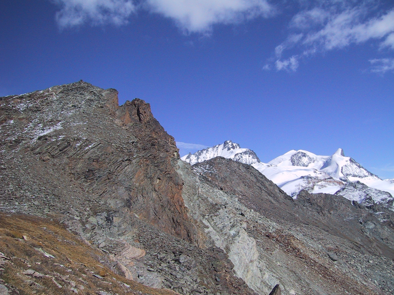 ブライトホルンとクラインマッターホルン。昨日はあの山頂にいたんだなあと 思い出す。
