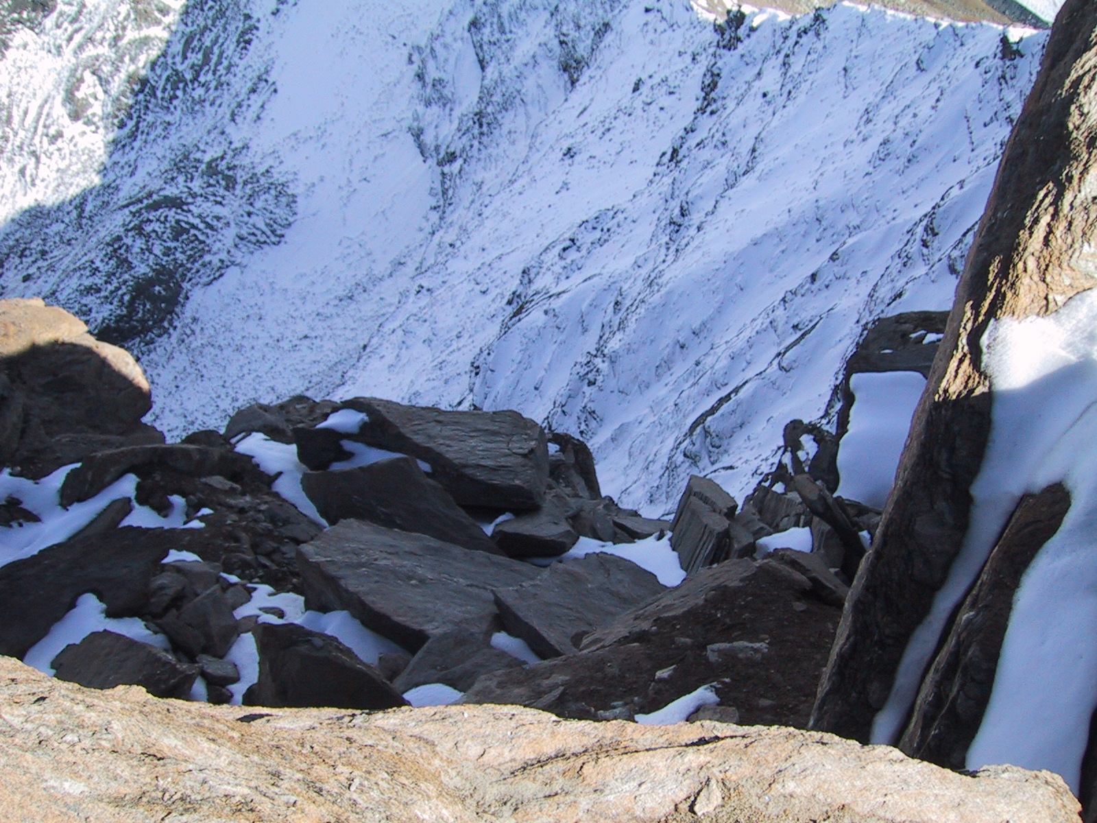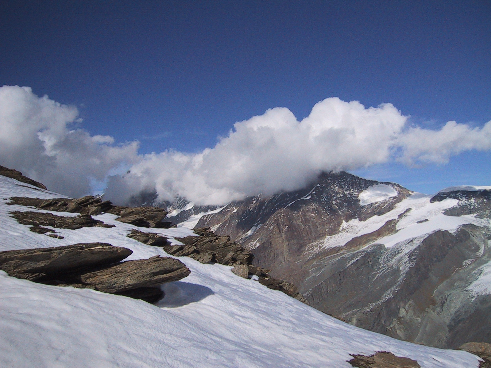いつの間にか雪が消え、ポカポカと温かくなってくる。 正面に見えるのはツィナールロートホルンZinalrothorn (4221m)と ヴァイスホルンWeisshorn(4505m)。