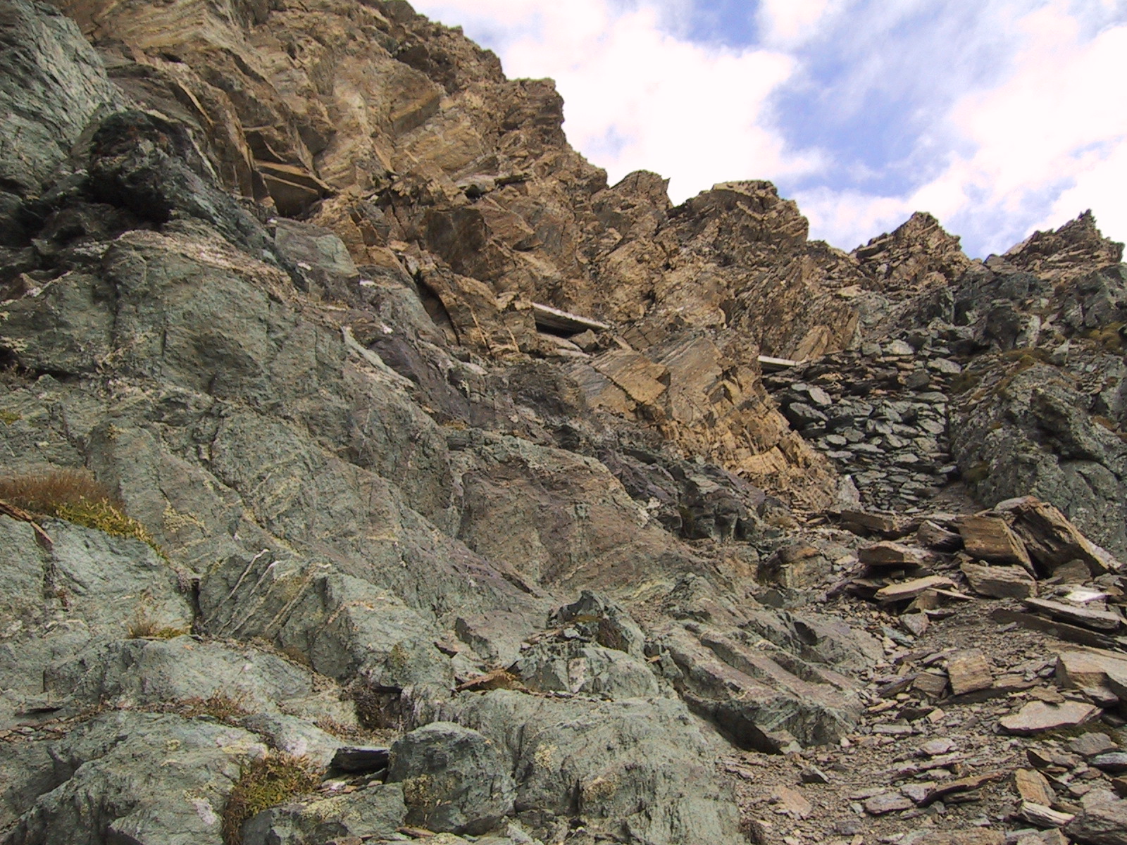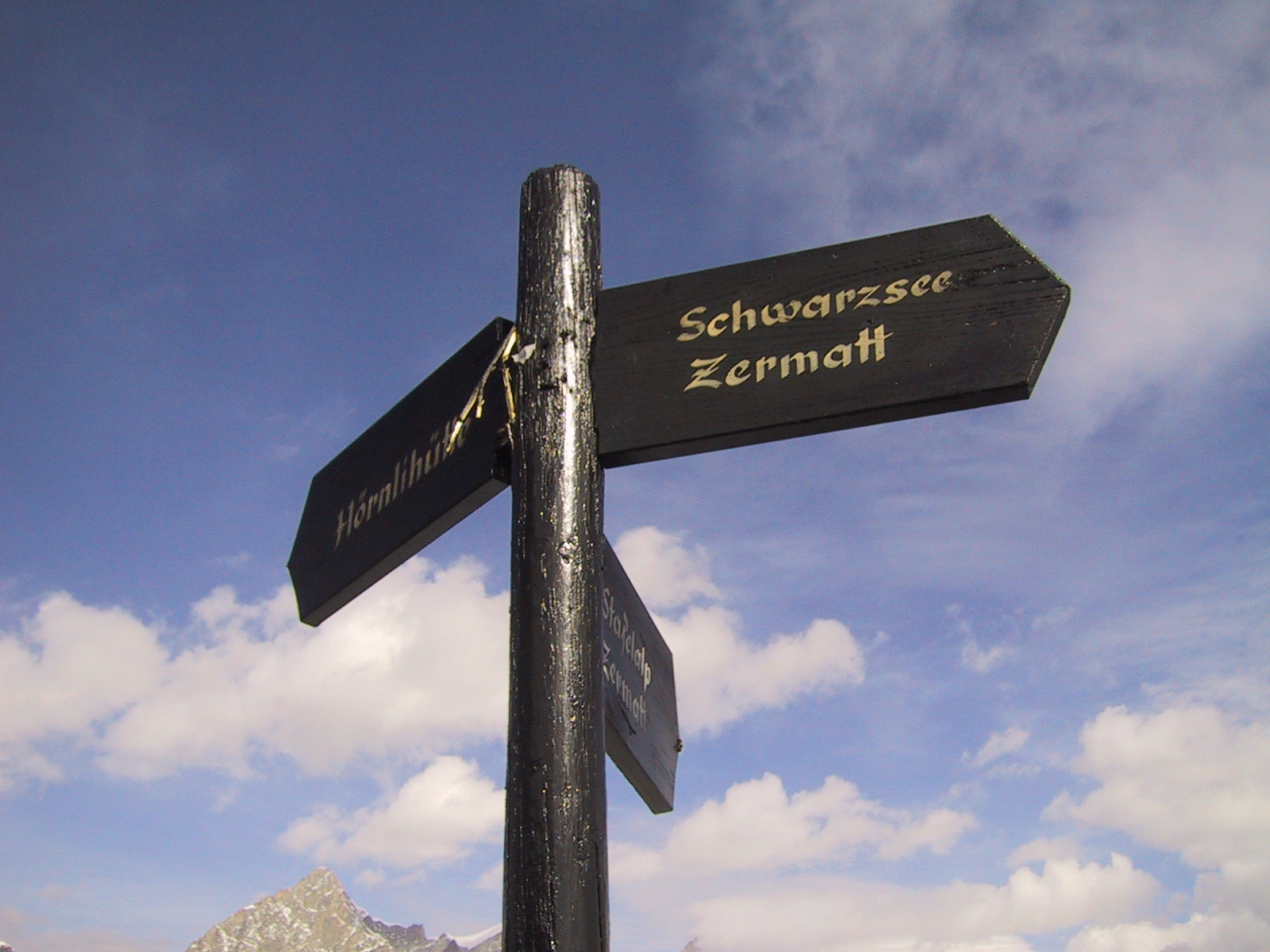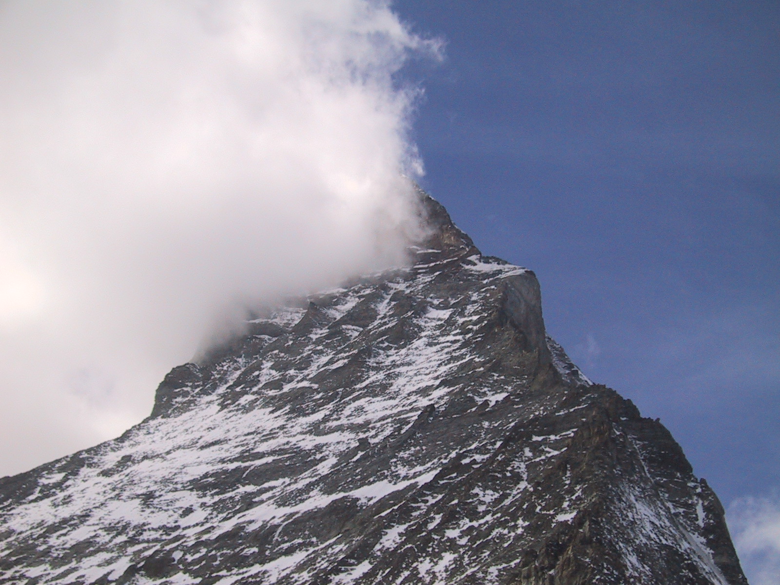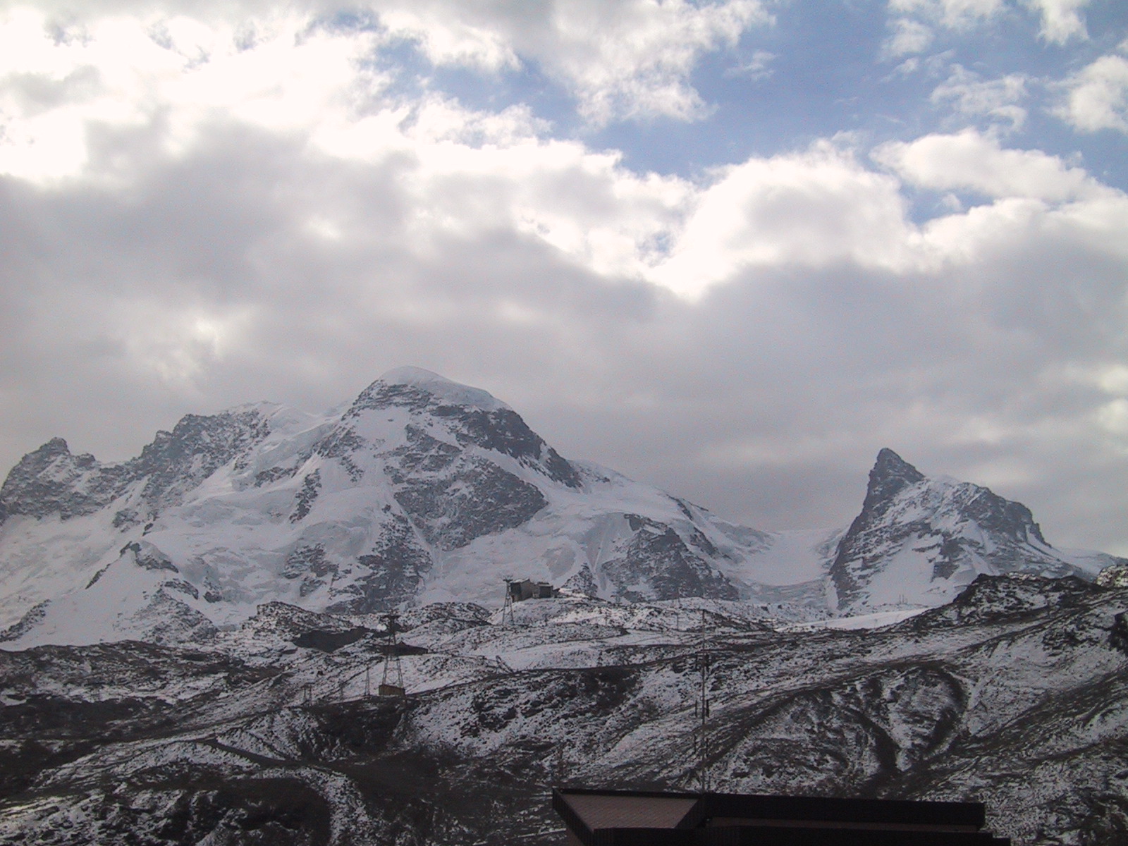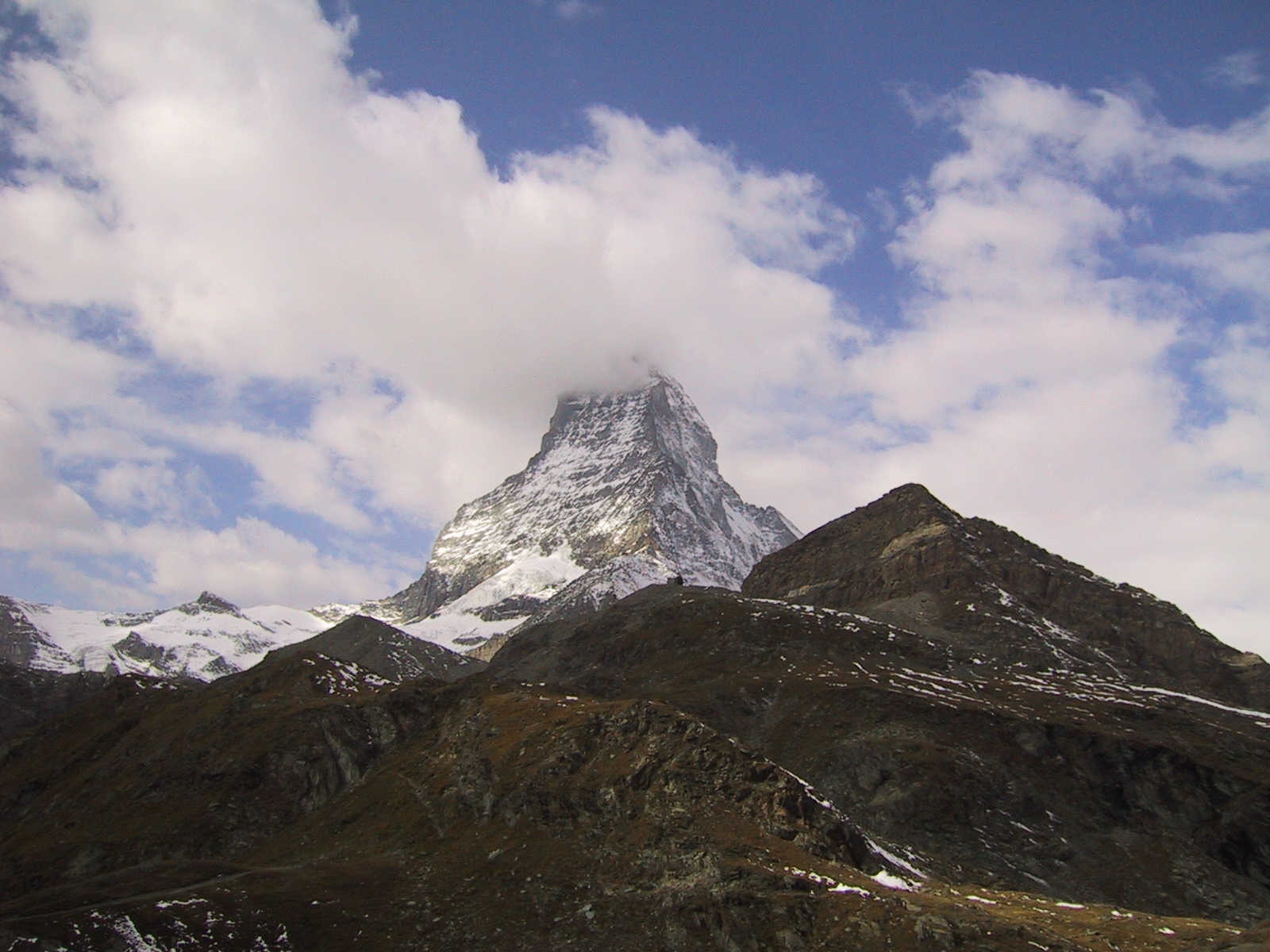 この日は残念ながらあまり天気は良くない。マッターホルンは雲を 被っている。しかし、予定通りマッターホルンのヘルンリ稜にある マッターホルンのベースとなる山小屋、 ヘルンリヒュッテH\:o rnlih\:u tte(3260m)を目指し、 マッターホルンに自分の力で行けるところまで近づくことにする。