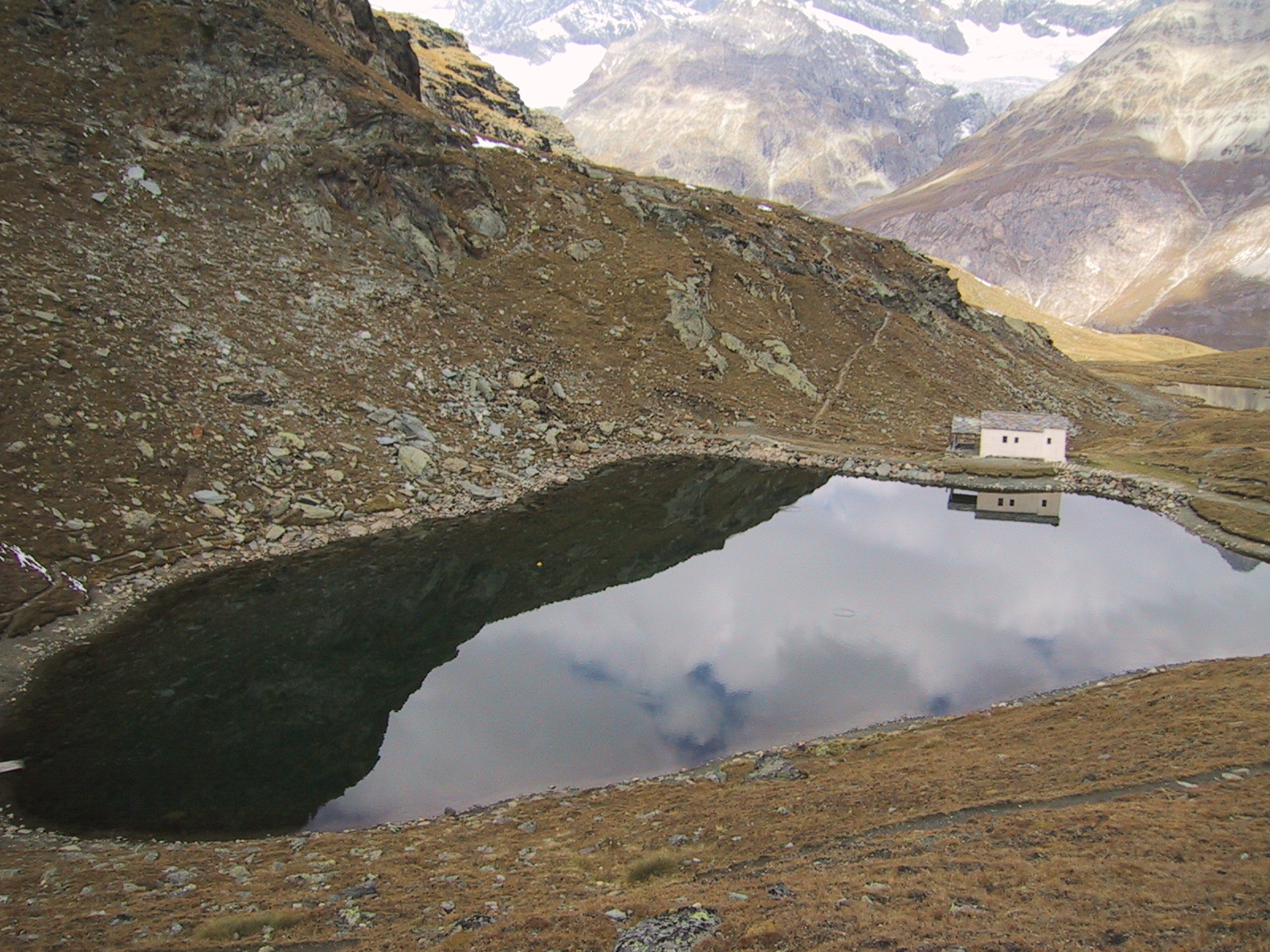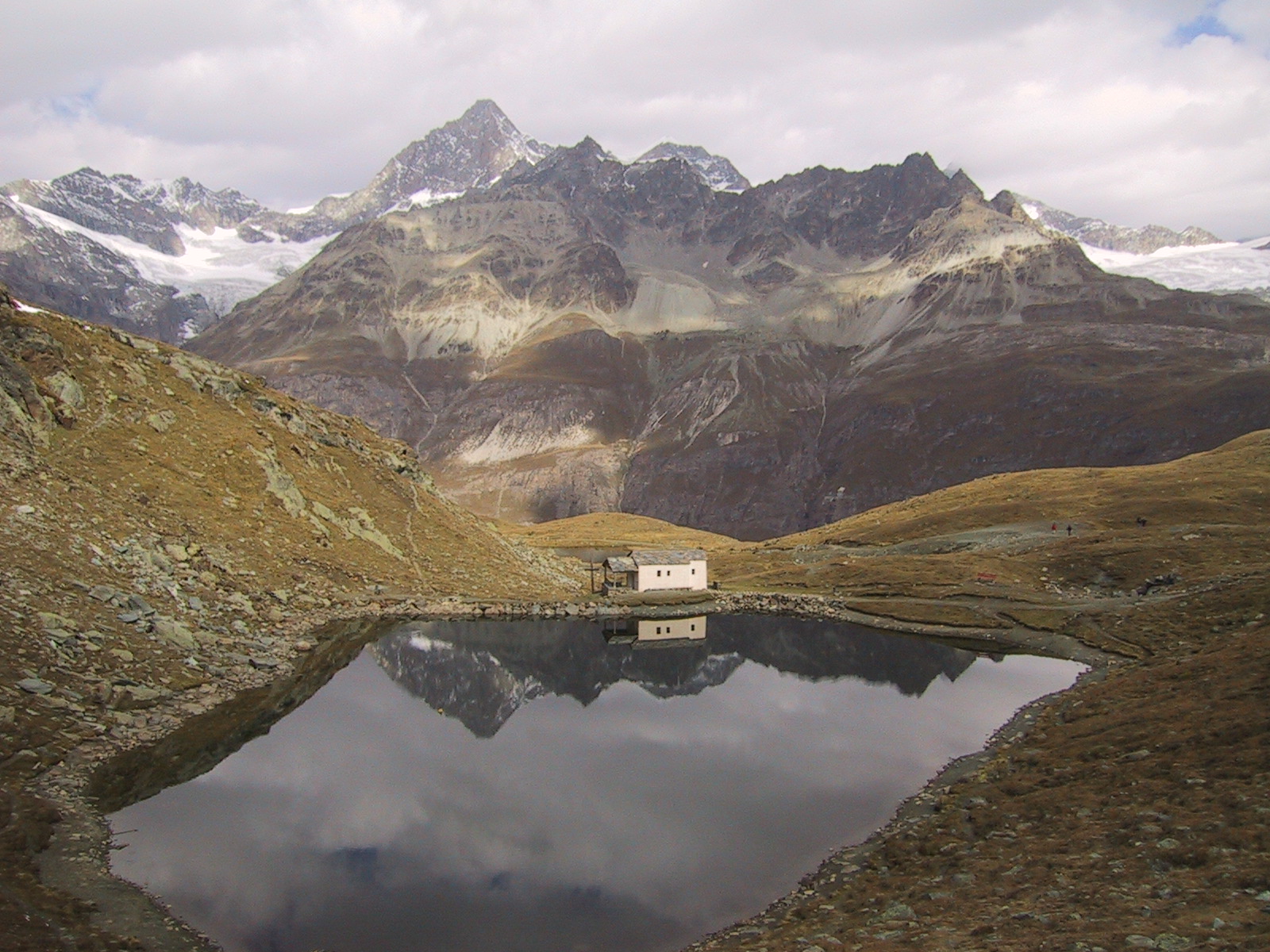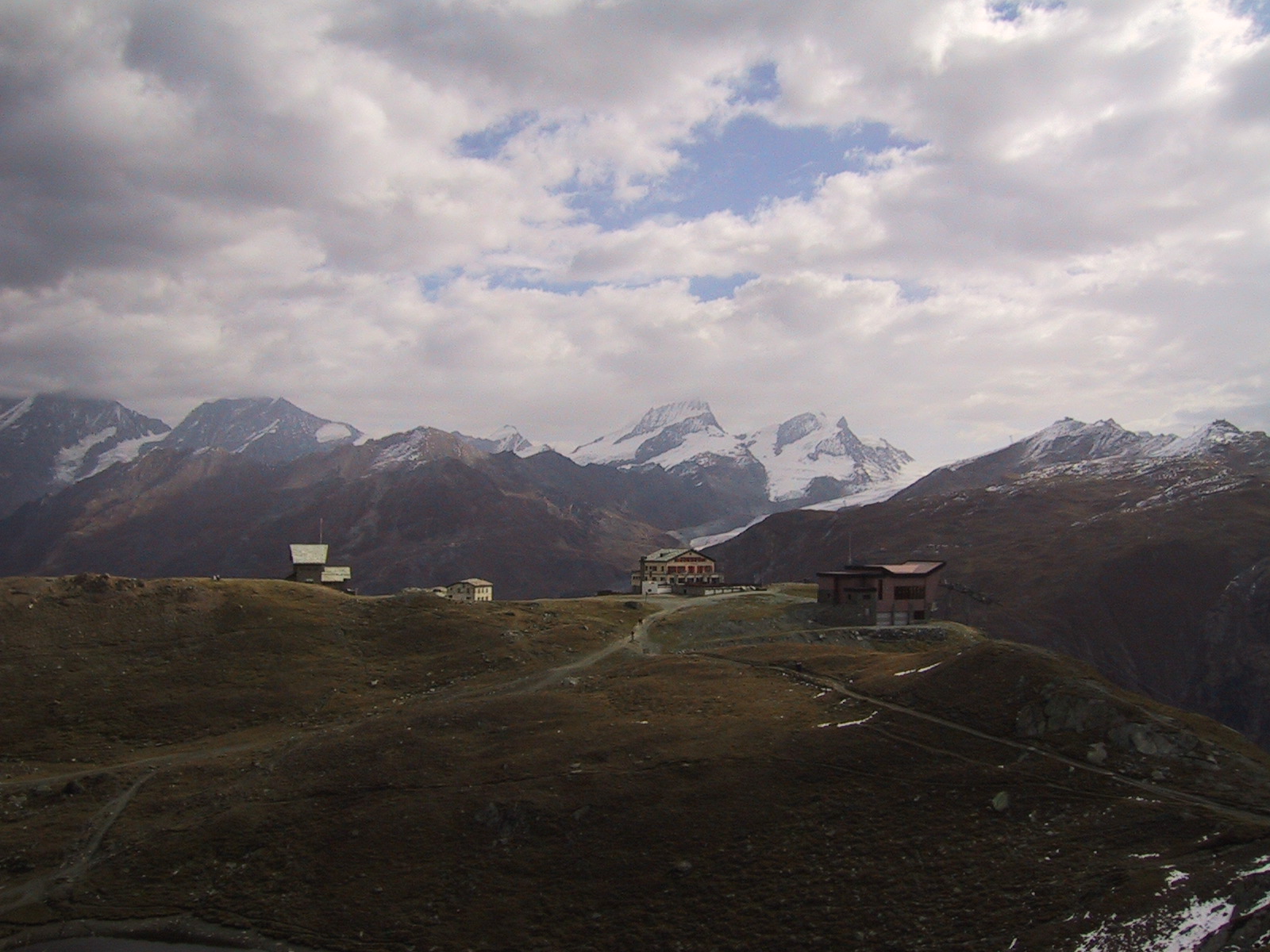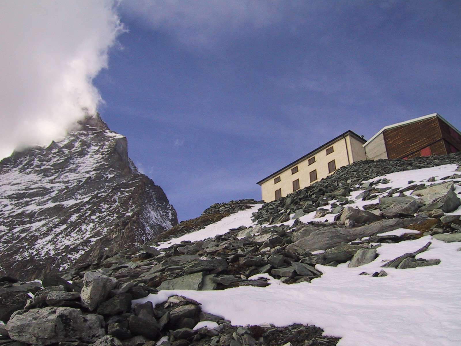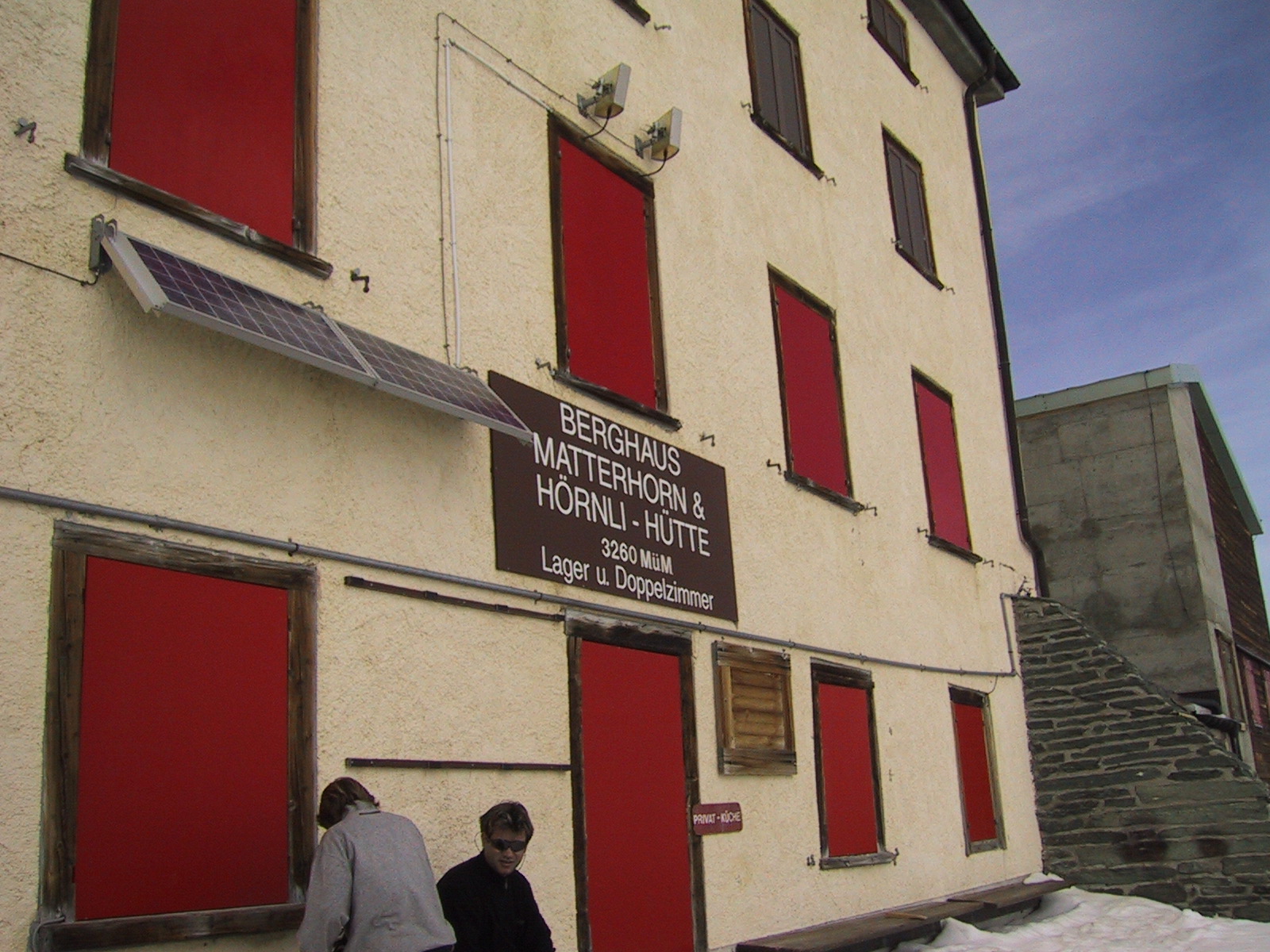 ヘルンリヒュッテH\:o rnlih\:u tte(3260m)に到着。 併設のレストランでおいしいスープが飲めると聞いていたので 楽しみにしていたのだが、残念ながらもう夏の営業は終わっていたらしい。 かかった時間は、10:45〜12:50の約2時間。