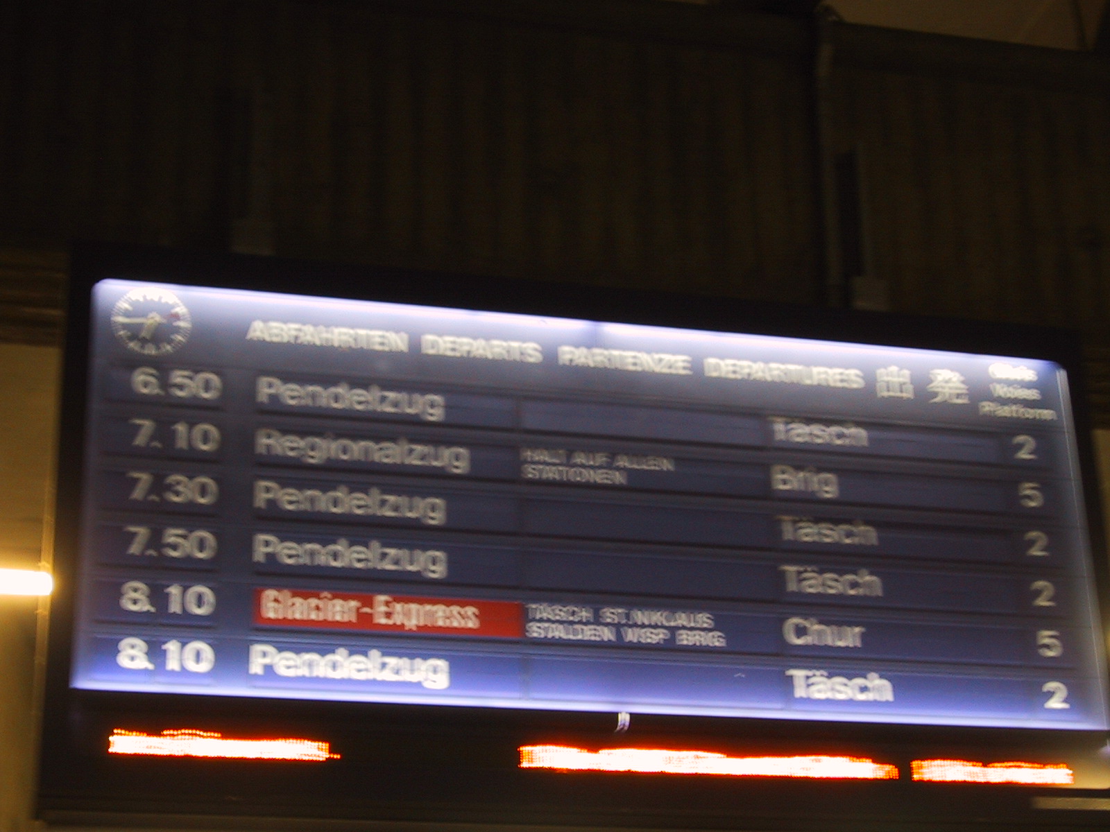 この日の朝は6:00発のBrig行きに乗るつもりだったが、 寝坊して次の7:10発になってしまった。