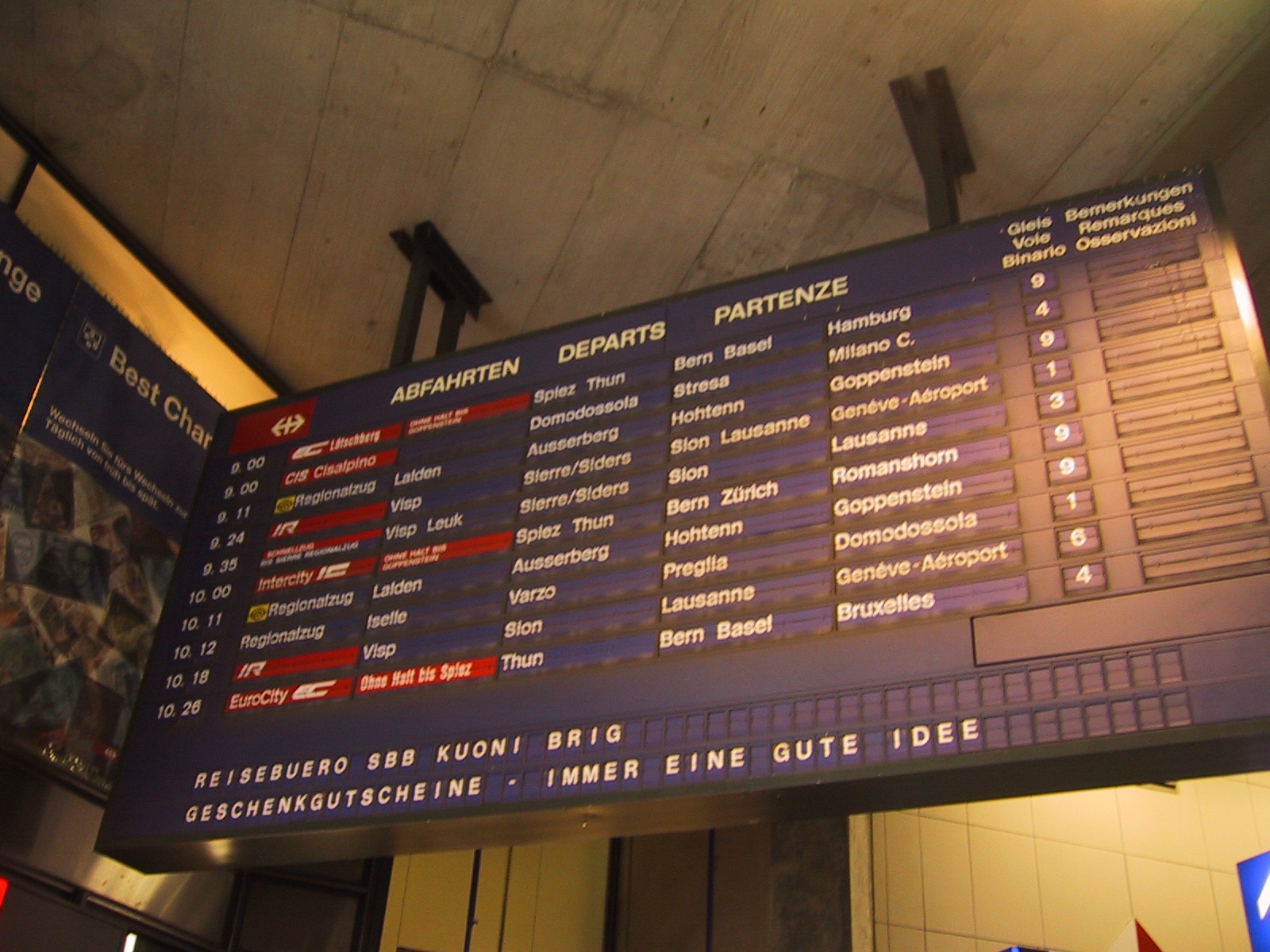 Bernで10:47発のチューリヒ行きに乗り換え。乗り換え時間が9分しか なかったが、ちゃんと間に合った。