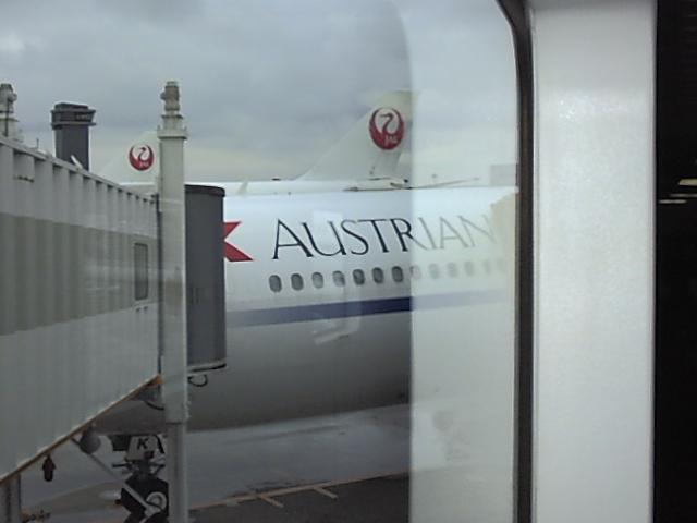 ANAだと思っていたら、ANAとオーストリア航空との共同運航な飛行機だった。 機体はオーストリア航空、機内食とかスチュワーデスとかは半々だった。