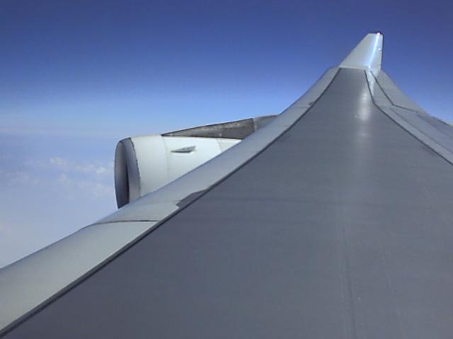 席は翼の上。もしかして機内でデジカメ使用って禁止?