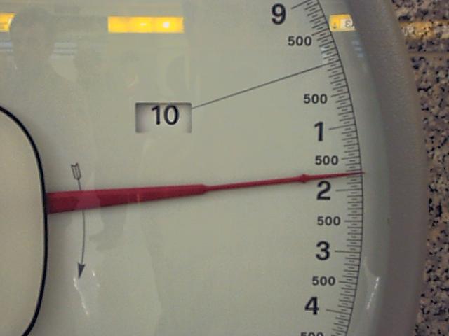 たまたま秤があったので荷物の重さを計って見る。約11.8kg。 デジカメは当然手に持っていたのでこれを加えると丁度12kg。