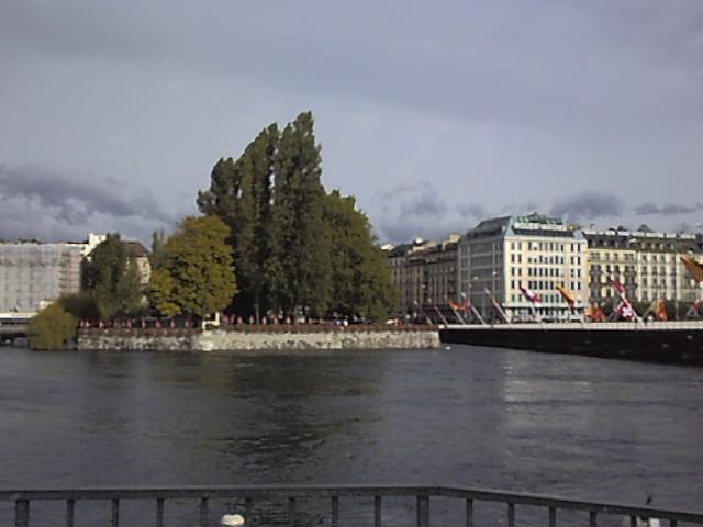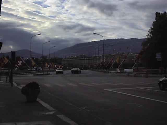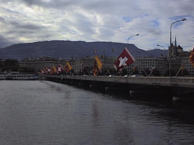 レマン湖にかかるモンブラン橋。橋の向こうは旧市街