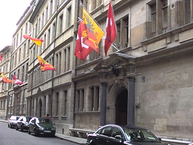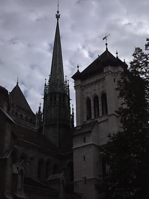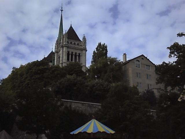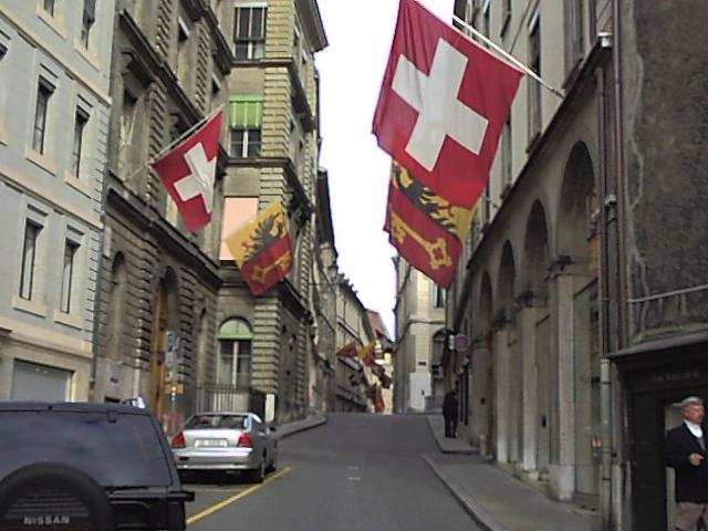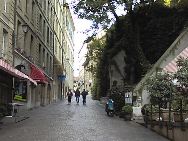ジュネーブ旧市街はこんな雰囲気。石畳の坂道を上る