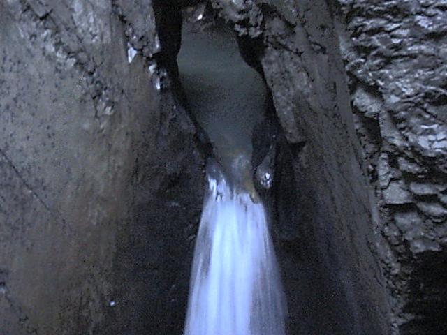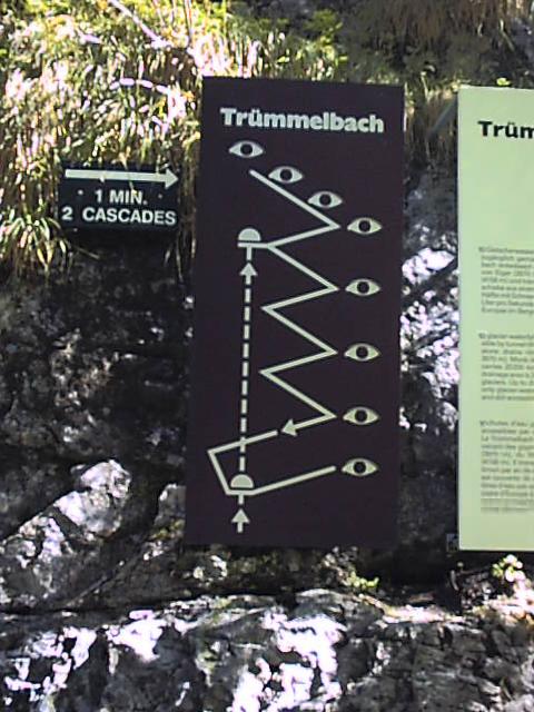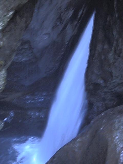 トリュンメルバッハの滝。 氷河の融けた水が岩を侵食して岩の中の流れる滝になっている。 全部で10段あってカスケード接続している。 写真ではよく判らない。