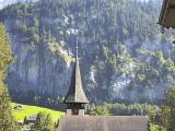 滝からみた教会。滝の反対側も断崖であることが判る。